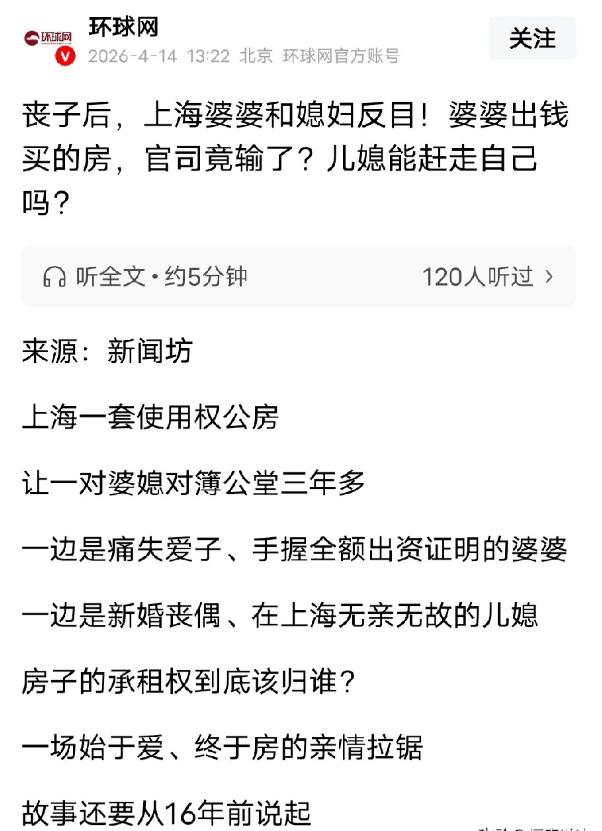 “人财两空!”上海,一阿姨拿出毕生积蓄,给儿子买了套使用权公房,承租人写着儿子名字,之后儿子结婚,儿子儿媳住了进去,可没想到,结婚3年,儿子去世了,阿姨想搬进去住,儿媳不同意,阿姨急了,这房子是我买的!之后阿姨通过物业公司指定,成了房子的承租人,又把自己的户口迁进了房子,儿媳告到法院,要求撤销阿姨承租人资格,一审判决,驳回儿媳的诉讼,可儿媳不服,接着上诉,二审反转,撤销了阿姨的承租人资格,阿姨要求再审,被高院驳回了,阿姨走投无路: 明明是我全额买的,怎么还会输?