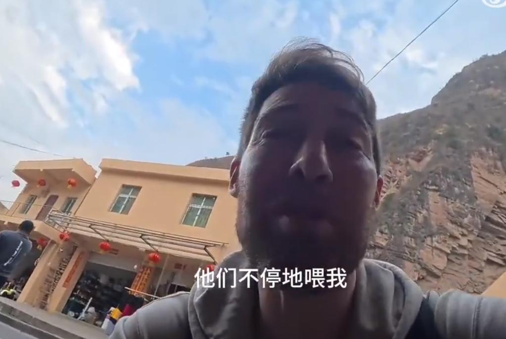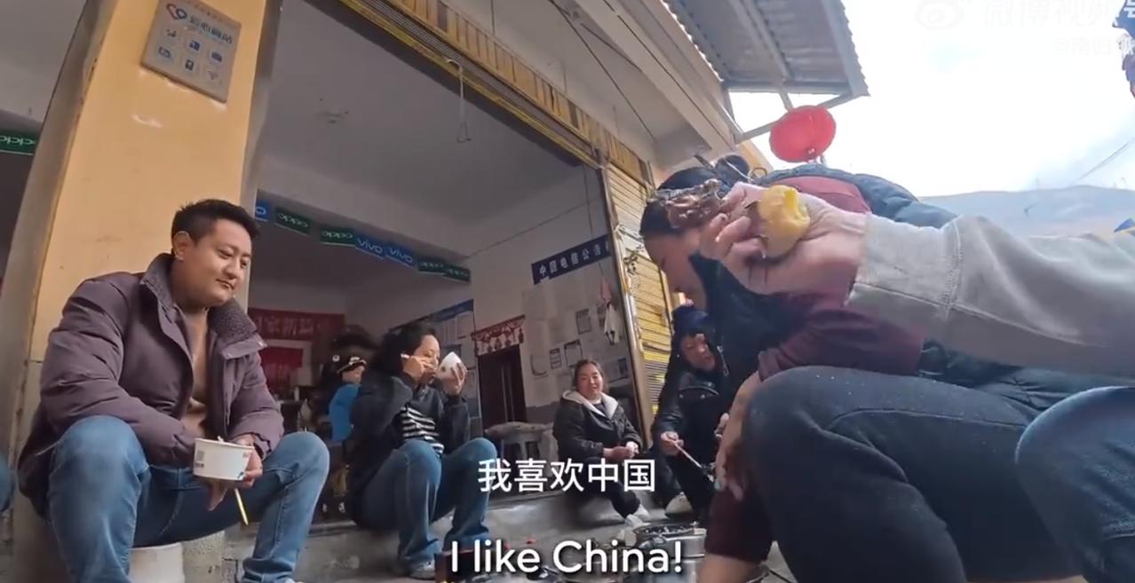这一次是大凉山彝族一家人正在吃饭,他个美国人,也过去蹭了一顿饭,又是土豆,又是各种肉的吃了一些。当然了肯定没吃饱,可能就走了,体验一下当地的民风。结果这家人问他为什么美国和伊朗要打仗?他说这是上面的事情,跟他没有关系,然后就不敢多说了,赶紧走了。