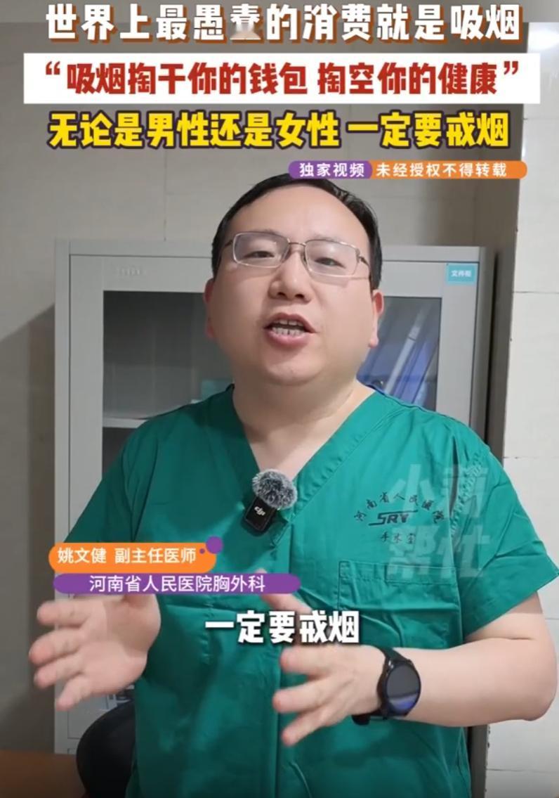 终于有人说了实话!河南,一位胸外科医生发视频呼吁:一定要戒烟,因为这个世上最愚蠢的消费,就是吸烟!