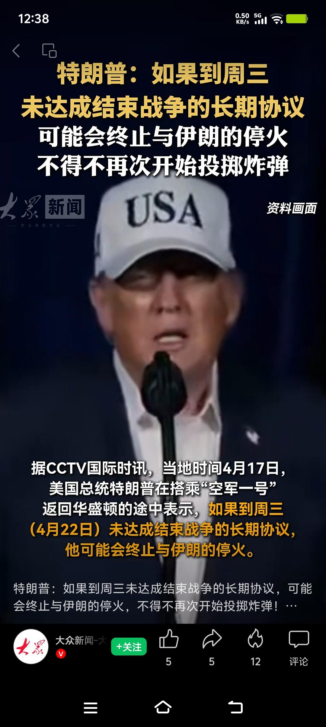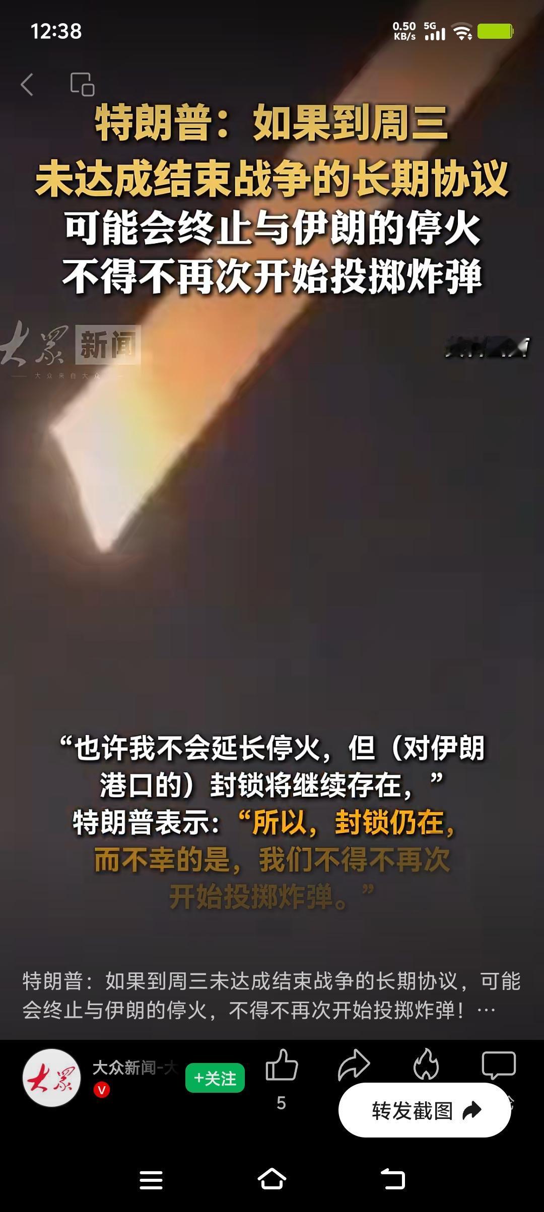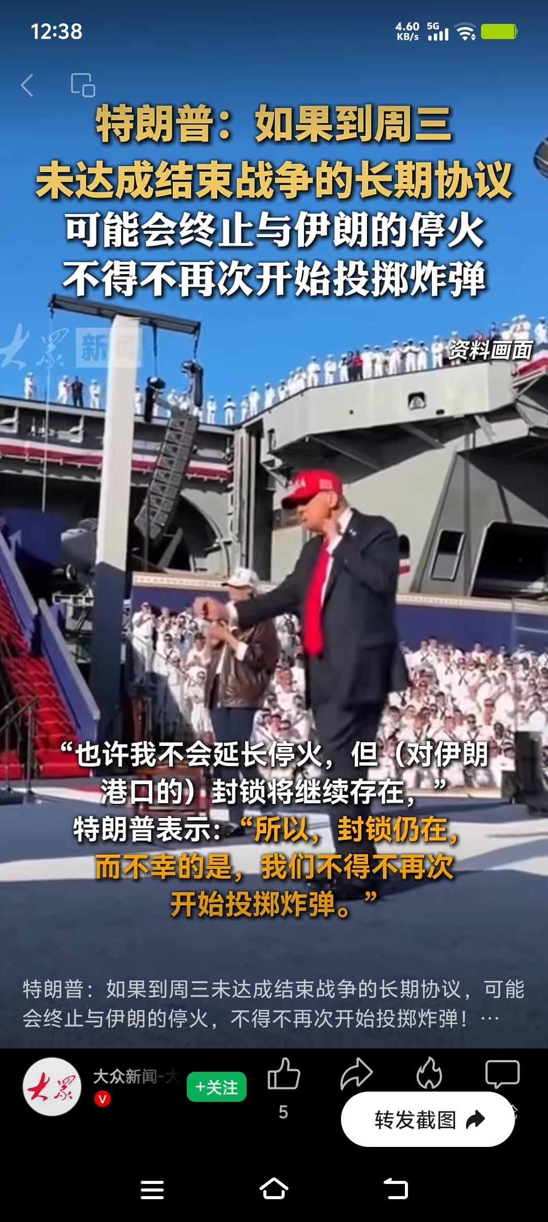 伊朗也不是吃素的,此前面对类似威胁,就强硬回应不会接受“霸凌政府”谈判要求,不会在威胁下谈判。特朗普2018年让美国退出伊核协议,现在又想谈新协议,这反复无常的态度实在让人难以信任。而且他这轰炸威胁,一旦实施,极有可能引发更大范围冲突,遭殃的还是普通民众。只能说,国际事务靠威胁可解决不了问题,还是得平等对话、协商才行。 声明:(借用网络视频图)仅供参考