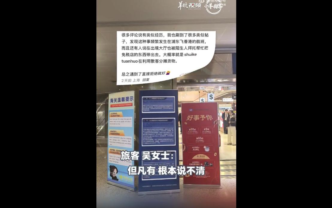 吴女士察觉异常,查询后发现疑似“水客”团伙利用旅客分摊货物,果断拒绝。