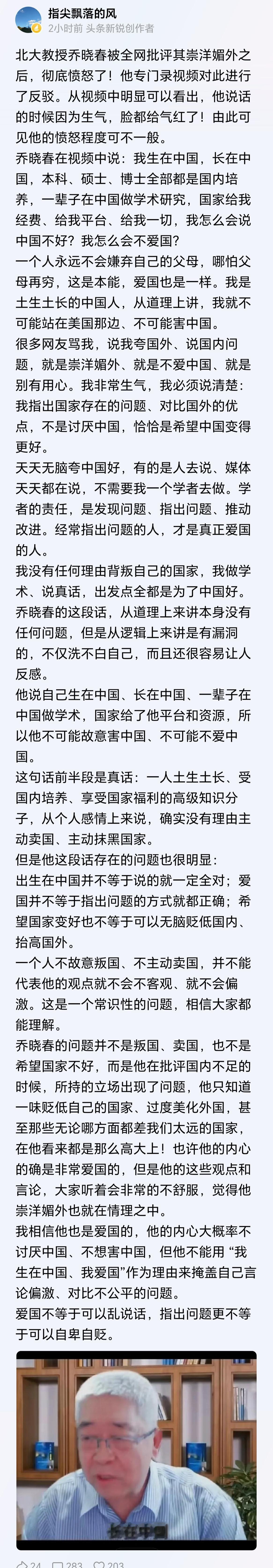 好像没有人说他不爱国,而是认为他的认知配不上教授的职位