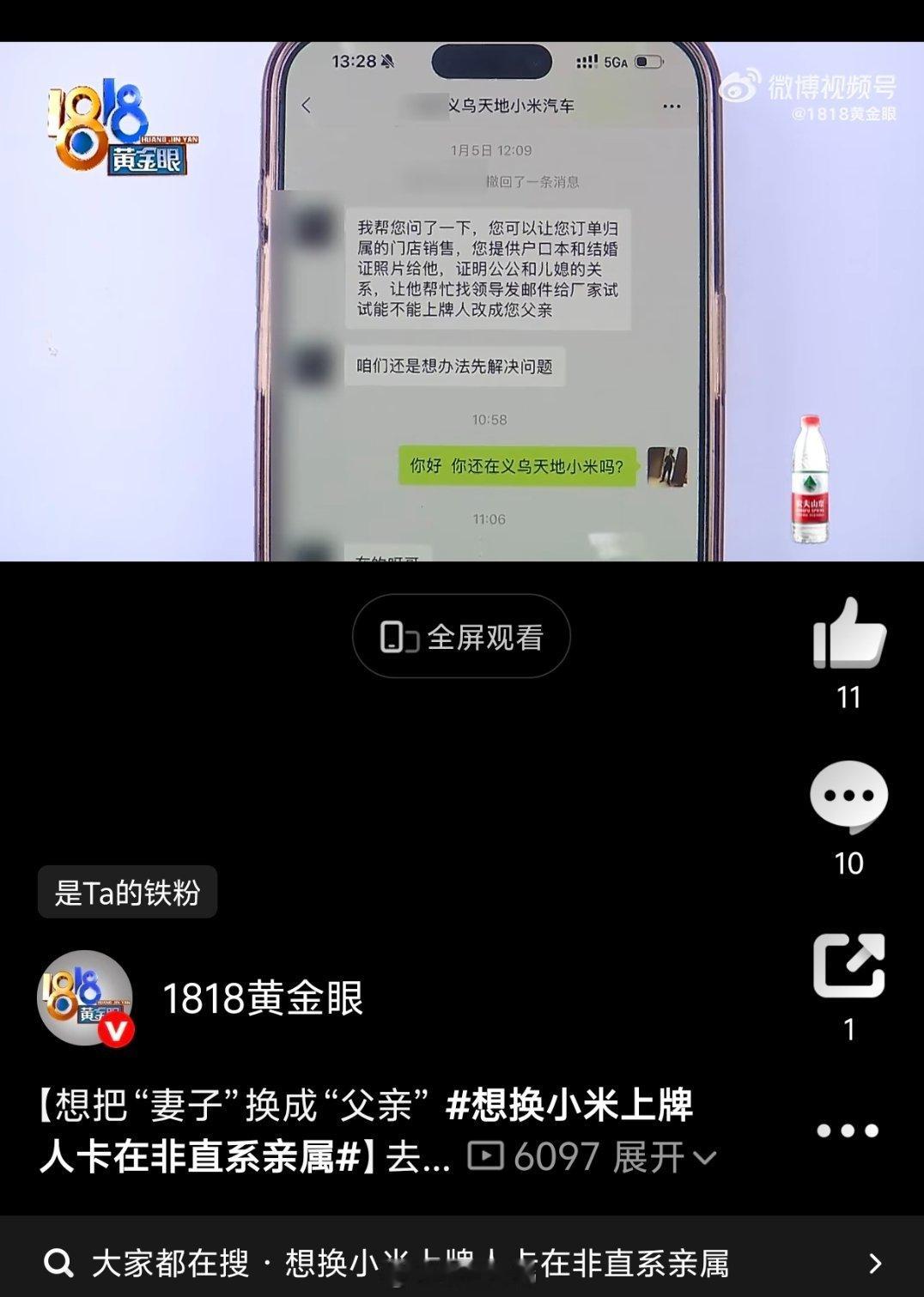 看完了整个视频说白了你不就是想变着法的耍赖,想退5000块钱定金嘛。首先,你自己要不要看看自己发出来的销售的聊天记录,人家是说让你提供相关资料,去跟厂家申请试试,并没有跟你保证说能够把上牌人从你媳妇变成你父亲啊。这个销售这话也没有一点毛病吧?这人说是在发布会那天下单,小米YU7是去年5月22发布的,如果你是在发布会那天下单,距离到现在都已经过了快要一年了,去年年底通知交钱提车,车没提定金不要了,怎么现在都4月了还在扯皮,你是真能忍啊。视频里面人家都提到了,是后面自己去提了其他品牌的车,打算这5000块钱定金不要了。按照你这意思,如果这个车能够改成你父亲,你是还打算再买一辆是吧?还有,说是去年买那个时候有15,000的国补,那你如果这个时候还要买,你是去年的订单,人家小米去年年底买车的,也都给兜底了购置税啊。最后,公公跟媳妇想要变成直系亲属,那就只能是领证,先离后领,成本也不高,肯定用不了5000。