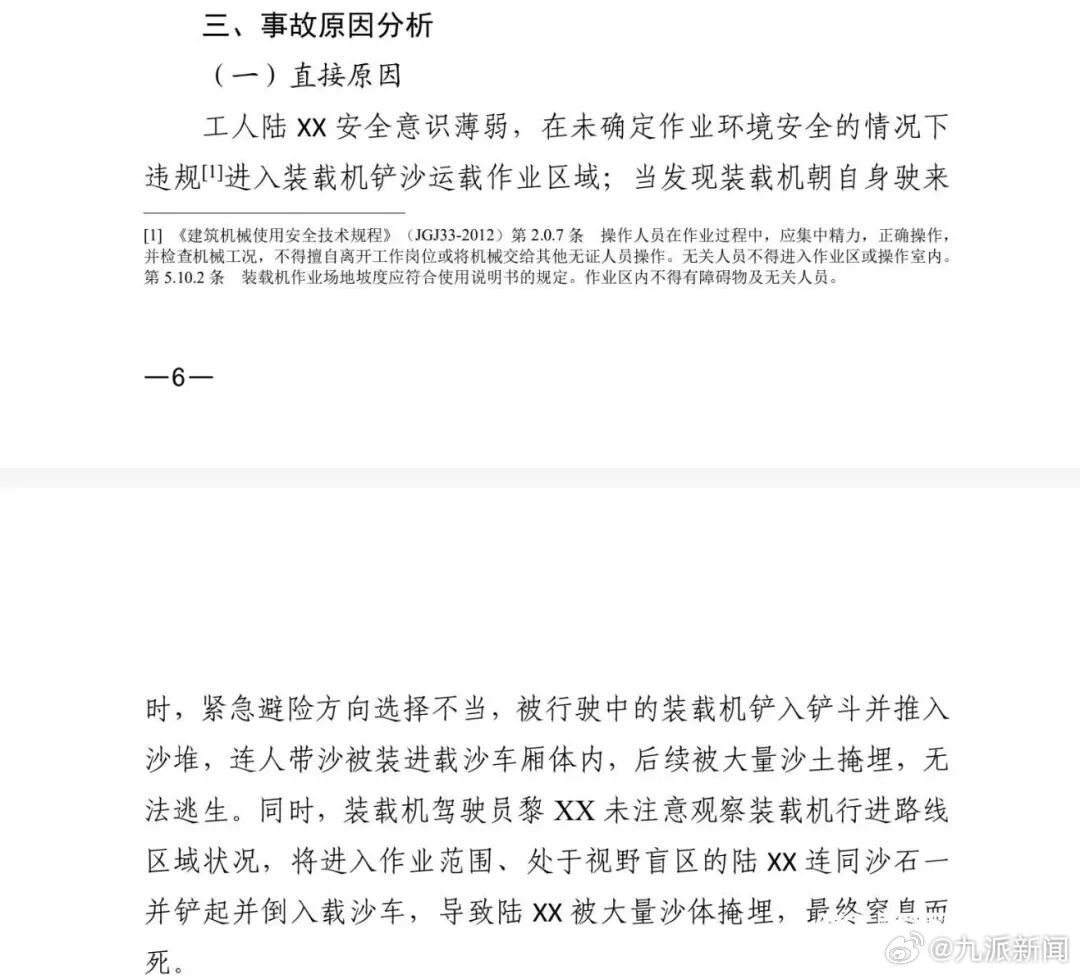 #官方通报男子被装载机铲入身亡#【#男子被装载机铲入身亡调查报告#】2025年10月11日10时44分许,惠州市吉胜建筑材料有限公司厂区内发生一起令人扼腕的车辆伤害事故。一名生产主管在装载机作业期间,违规进入铲车运载作业区域,被正在铲沙的装载机连同沙料一同铲入斗中,随后倒入运输车厢,被大量沙土掩埋窒息身亡。