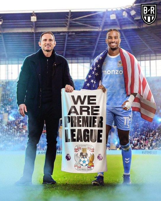 兰帕德带领考文垂提前3轮锁定英冠前两名,成功获得下赛季英超参赛资格,时隔25年重返英超。