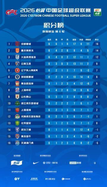 中超第六轮全部结束!9支扣分球队依然排在后9位!