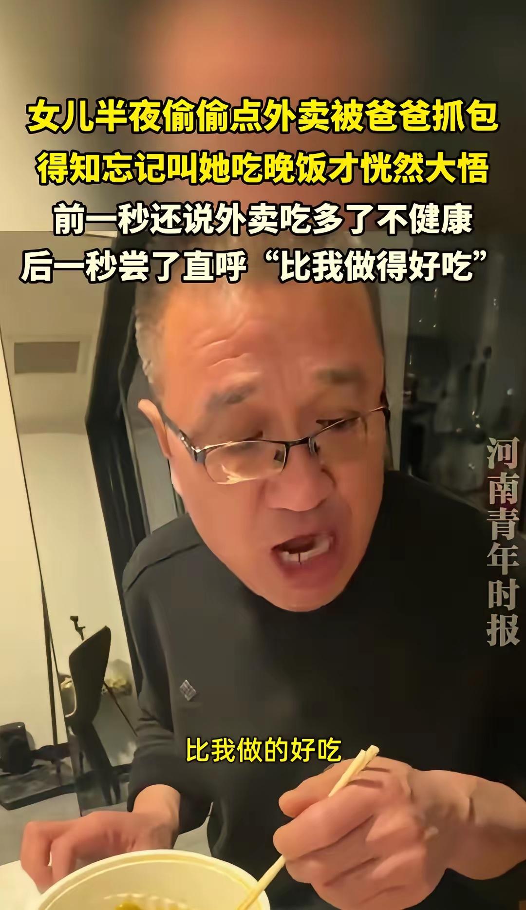 “真香了!”山东,一女生半夜在家悄悄点外卖突然被爸爸抓包。他一脸不高兴的问:“你