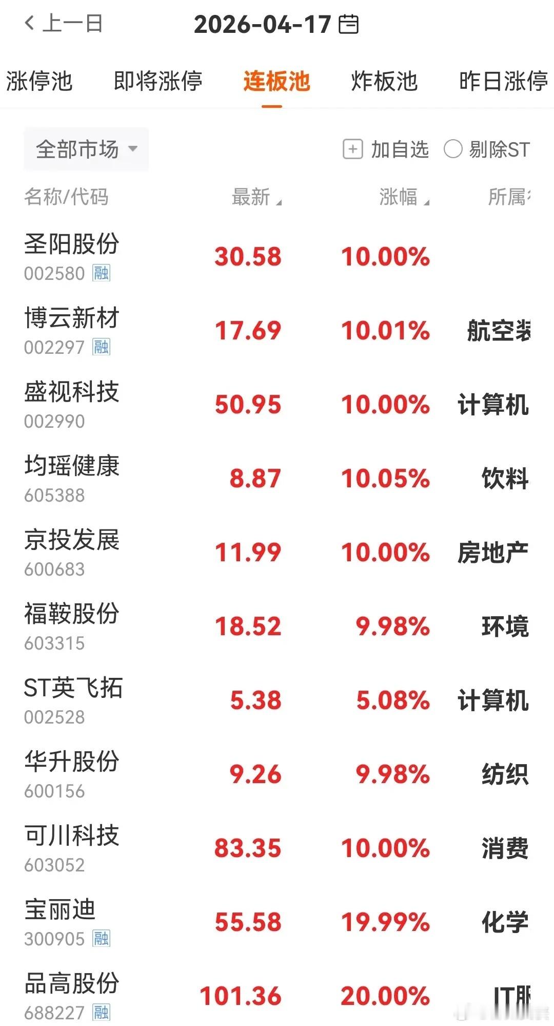 1. ST板块 (ST英飞拓、ST京蓝) ST股受限于5%的涨幅和特定的摘帽/重组逻辑,走势往往独立于大盘,流动性较差,除非有明确的重组利好公告,否则连板持续性通常不佳。2. 房地产 (京投发展) & 纺织 (华升股份) 属于传统行业。地产更多是博弈政策消息,持续性往往“一日游”;纺织属于边缘题材,除非有突发的出口利好或流感概念(口罩),否则很难走出长连板。