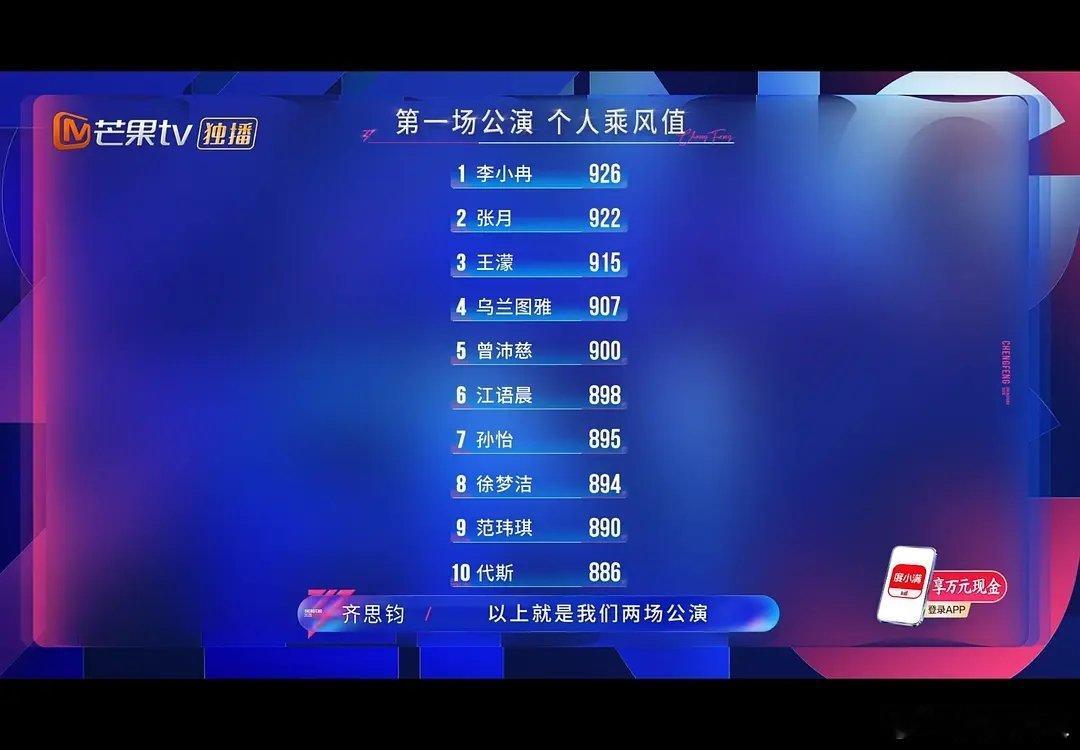 乘风2026|一公个喜排名