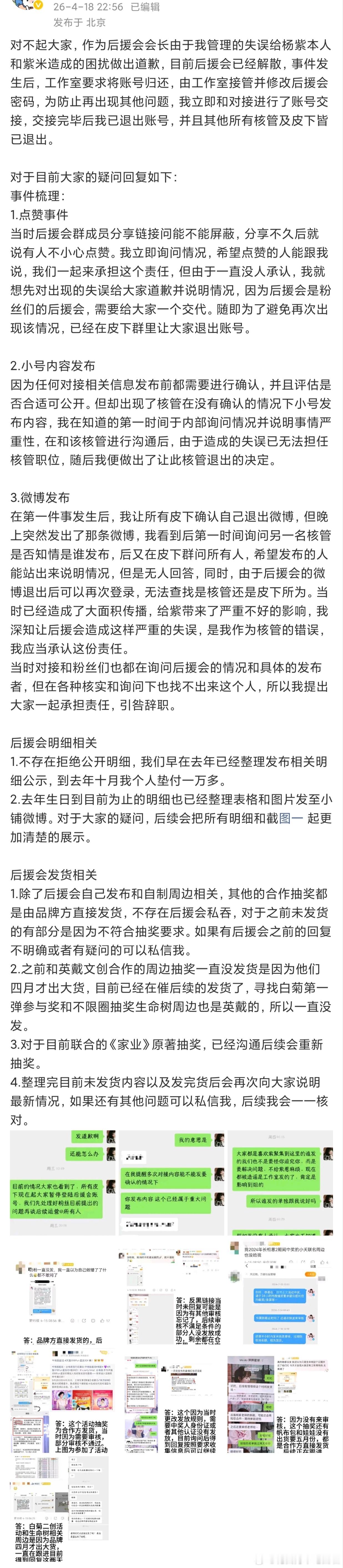 杨紫后援会的会长回应点👍🏻的事了,说后援会所有皮下已经退出,并且把🎺上交工