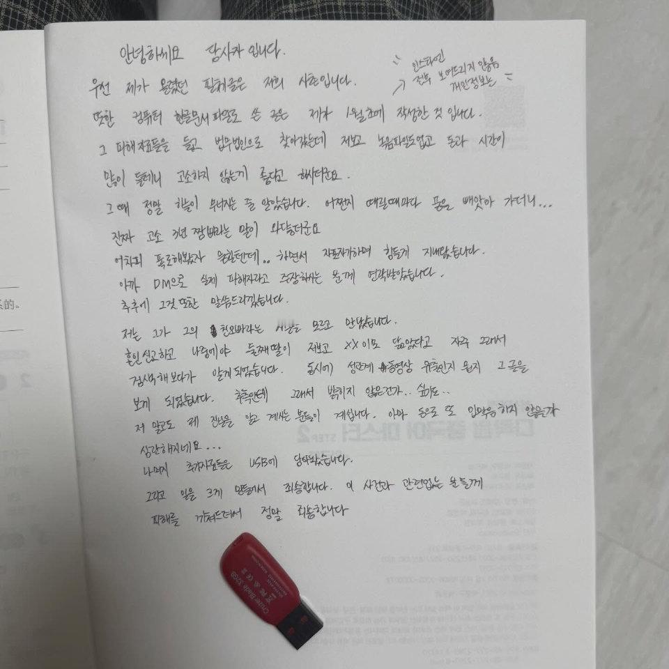 金智秀哥哥第二任妻子发文 省流:受害人和金正勋直到结婚时,都不知道他和金智秀有关系,去搜索后才知道金正勋是金智秀亲哥哥这件事。受害人因为这件事牵扯到无关的人造成伤害很抱歉。详细翻译(图3-4)