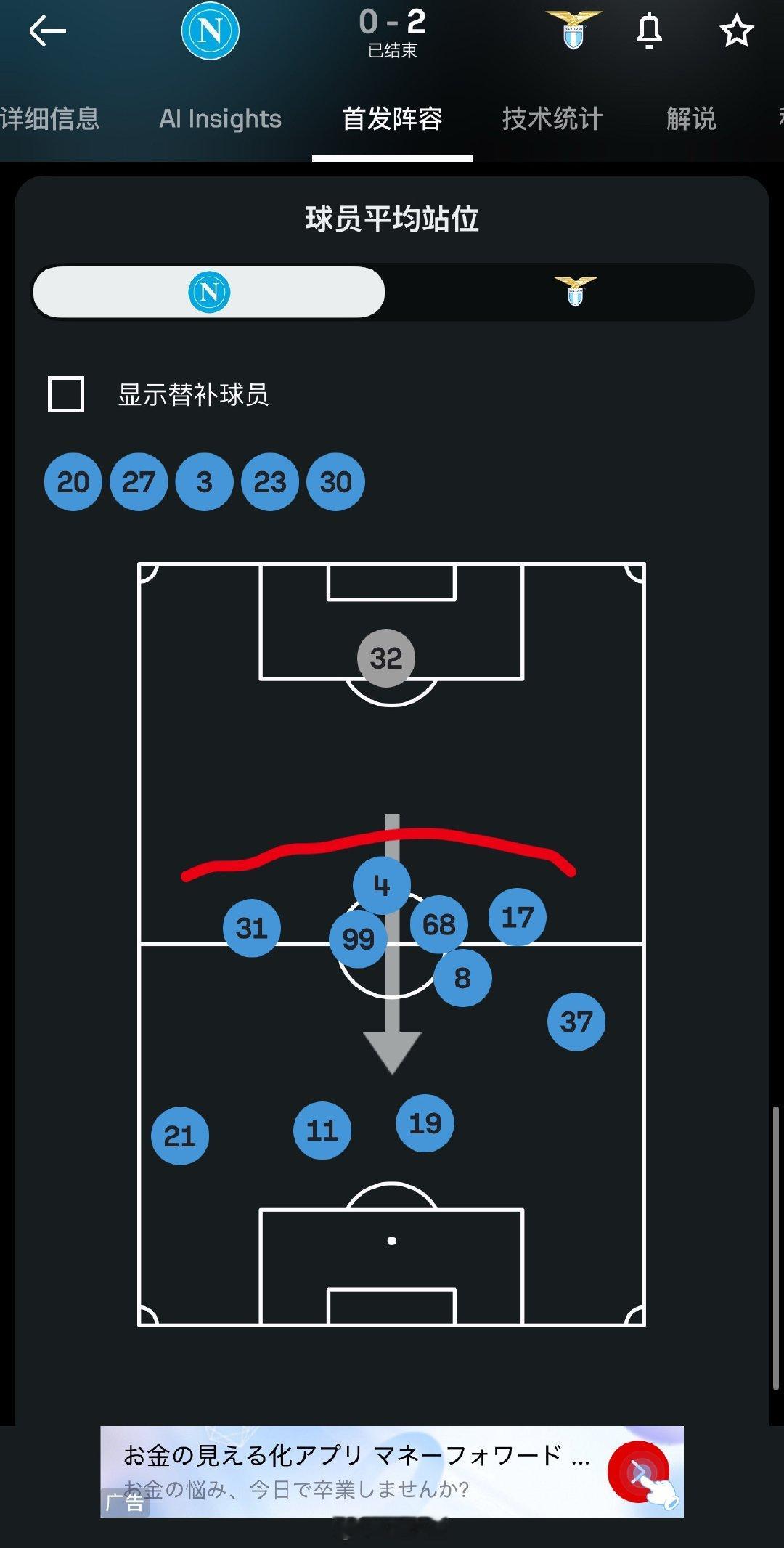 今天那不勒斯67控球率,12个角球,36次传中,12次射门,但是0射正你没听错,预期进球0.55。