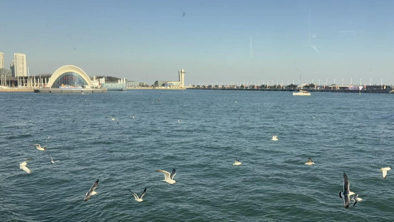 早上10点从奥帆中心出发,这里可是2008年北京奥运会比赛场地之一。游船穿梭在浮山湾,阳光洒在海面金光闪闪,沿岸建筑与碧海蓝天相得益彰。小麦岛也很出片。