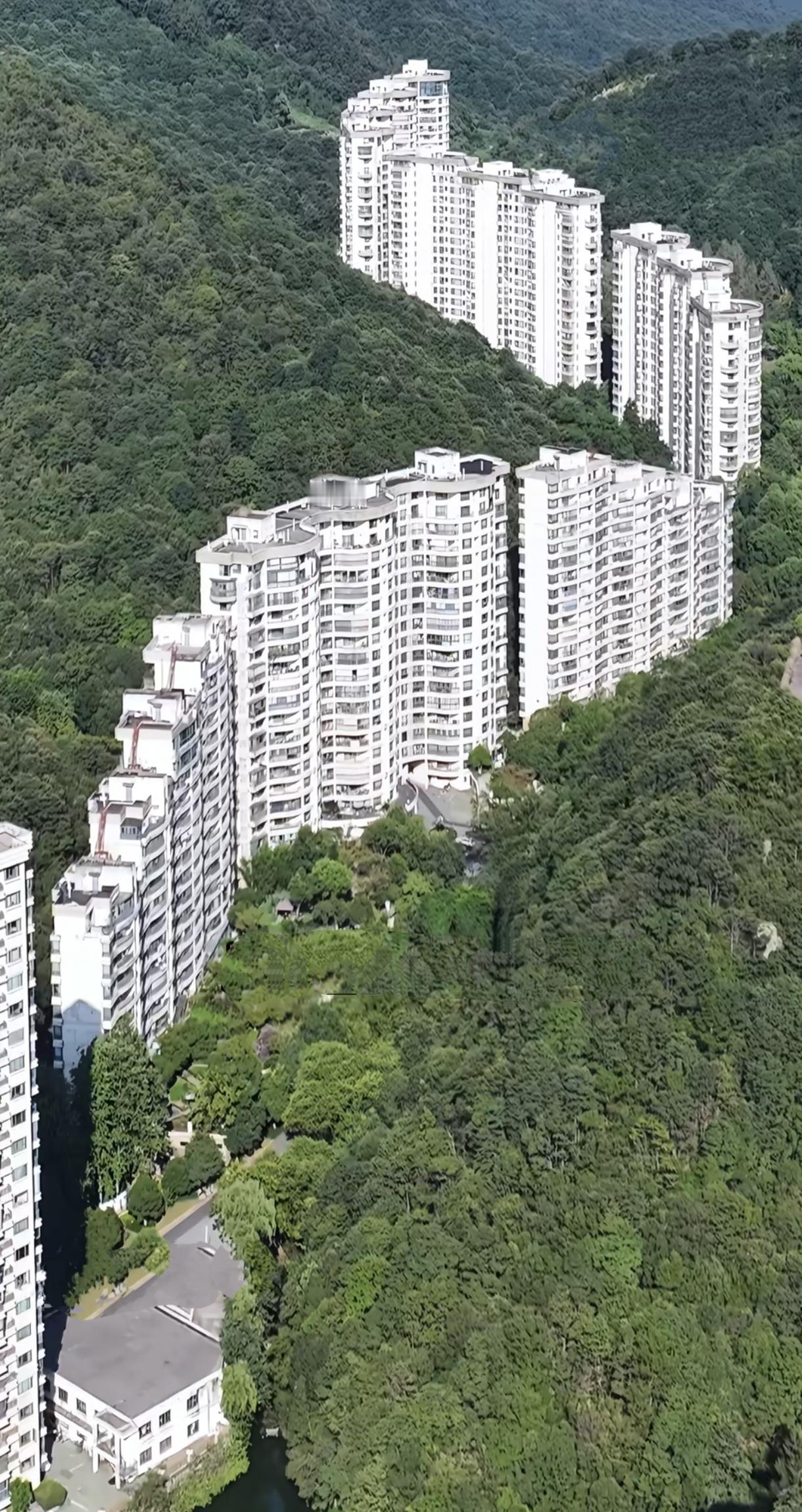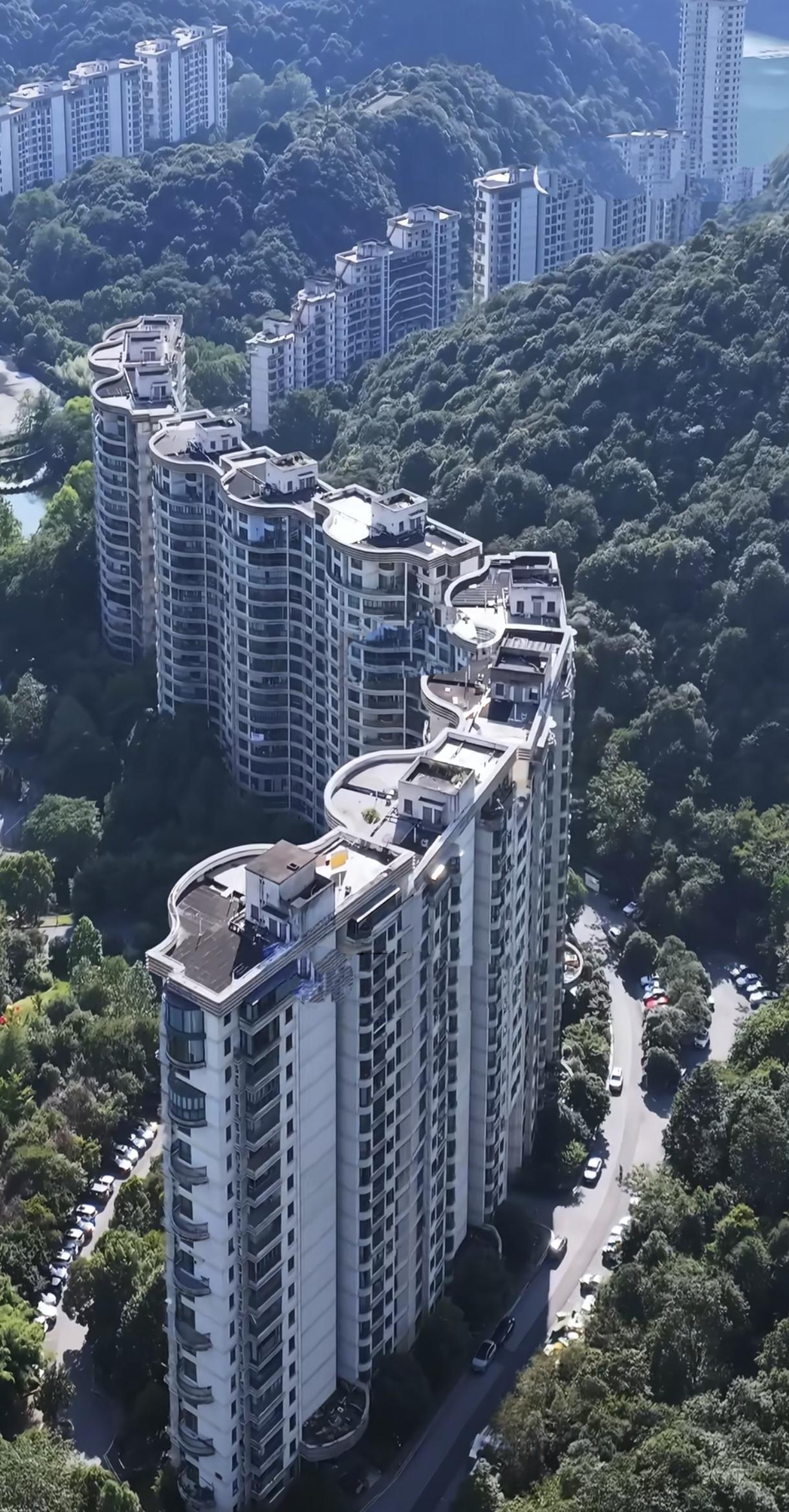 杭州就有这种小区,一字长蛇阵,这里负氧量很高吧,算全国绿化最好的小区不为过。山景房,夏天避暑住几个月不错。我觉得挺好,地方起床就能锻炼身体了。从上面搞个滑翔伞跳下去直接进山了。香港太平山豪宅就这样,都是上亿的豪宅。