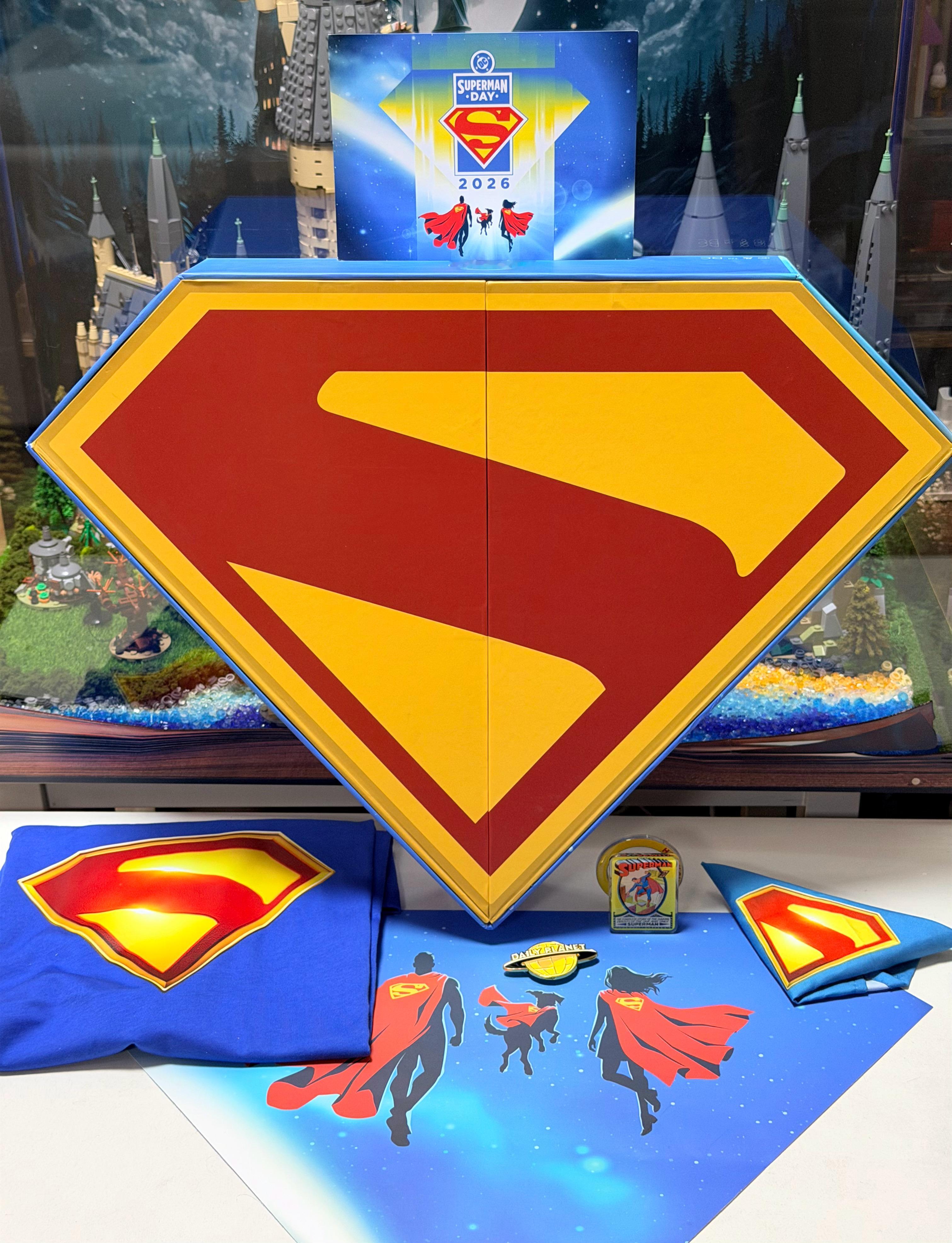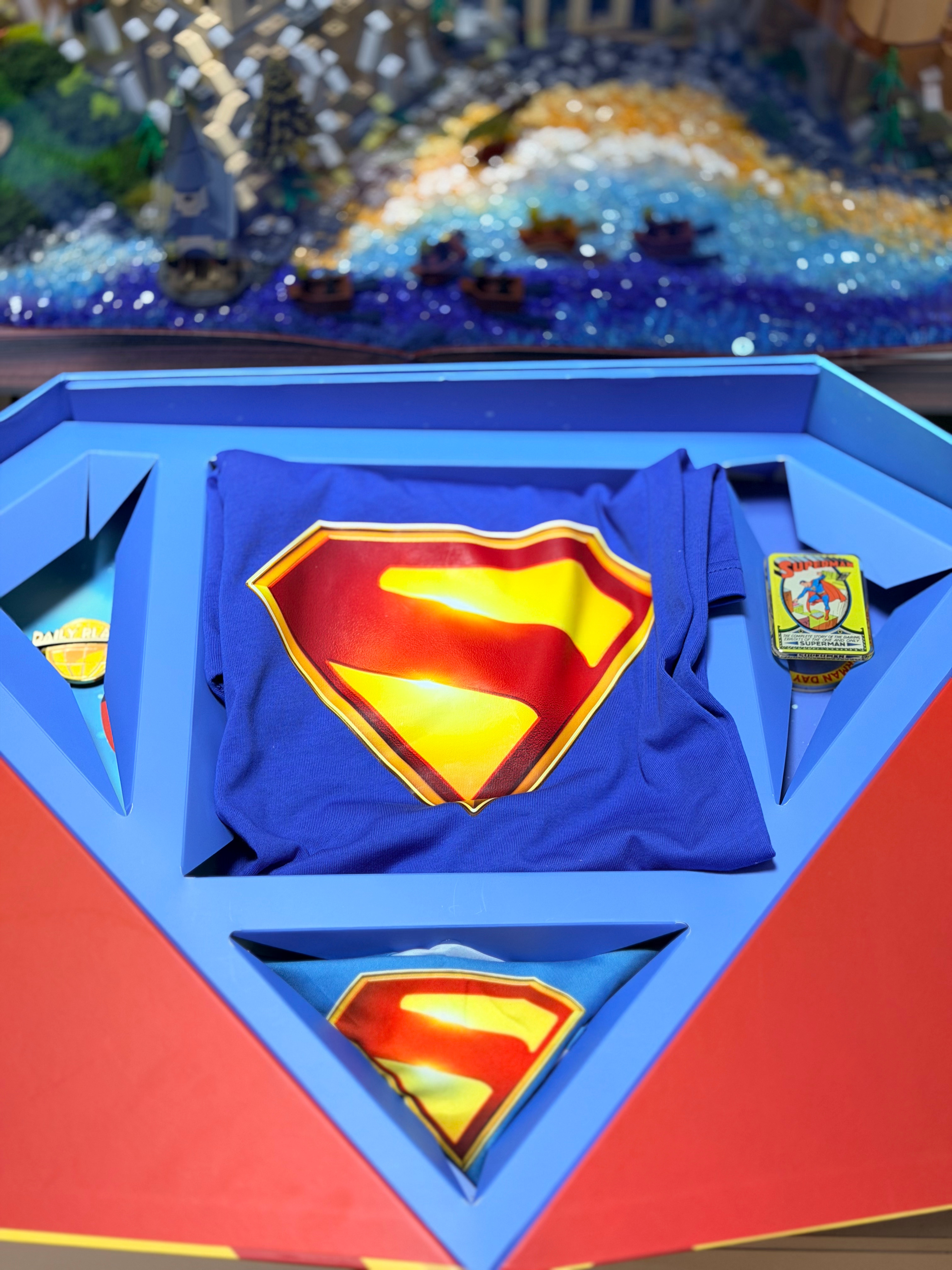 今年的超人日来了!先给大家看看今年的限定礼盒——经典S盾造型包装(内含:超人S标志T恤、口水巾、星球日报磁吸徽章、手机支架),超人、超级少女和小氪首次组团登场!周边真的超用心🎁