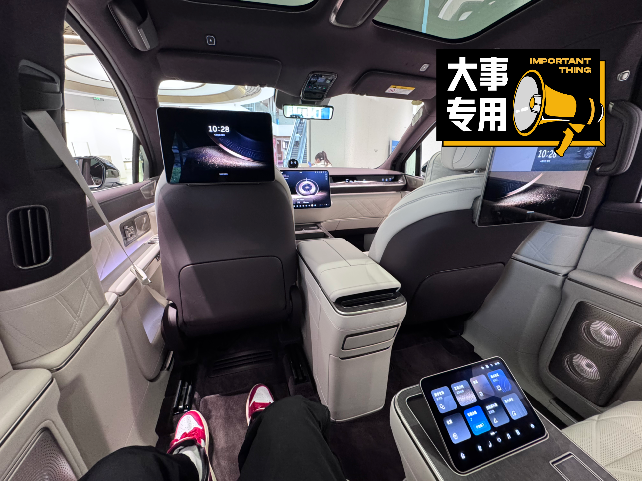 ES9这款车车内的车机包括前排的以及第二排的智能屏,它都是有联动的体验的,而且车内还搭载了座舱的氛围灯,可以随心调节,不管是商务的时候用,还是出行的时候用,都是蛮不错的!
