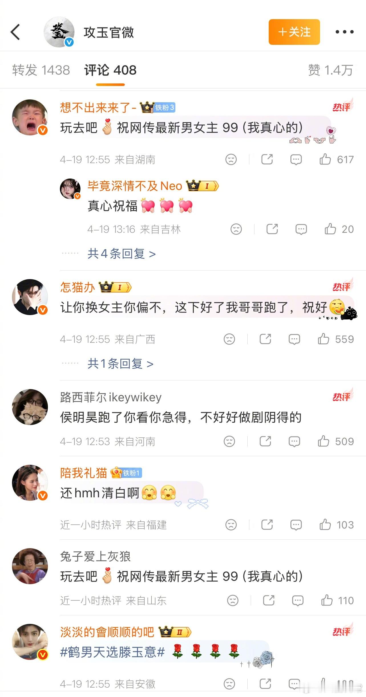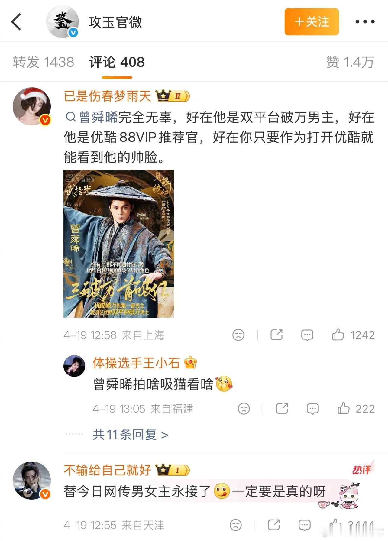 《攻玉》官博回应关于网传的男主侯明昊换成曾舜晞:请大家保持理性,以官方发布信息为准,感谢支持