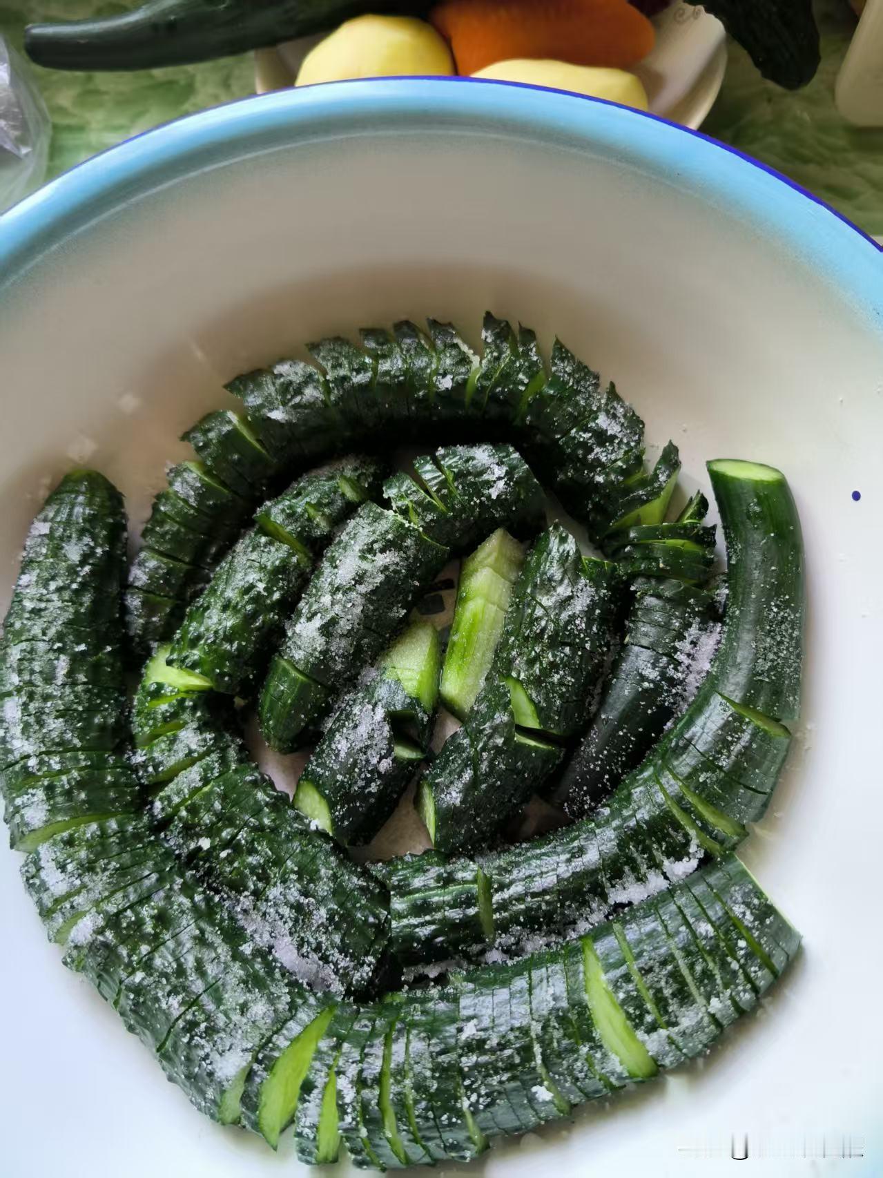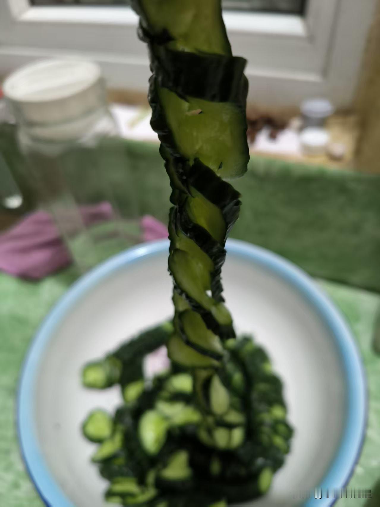 那天从集上买了一兜黄瓜,十棵五块钱。黄瓜放不住,就做了点蓑衣黄瓜。 黄瓜切成螺旋