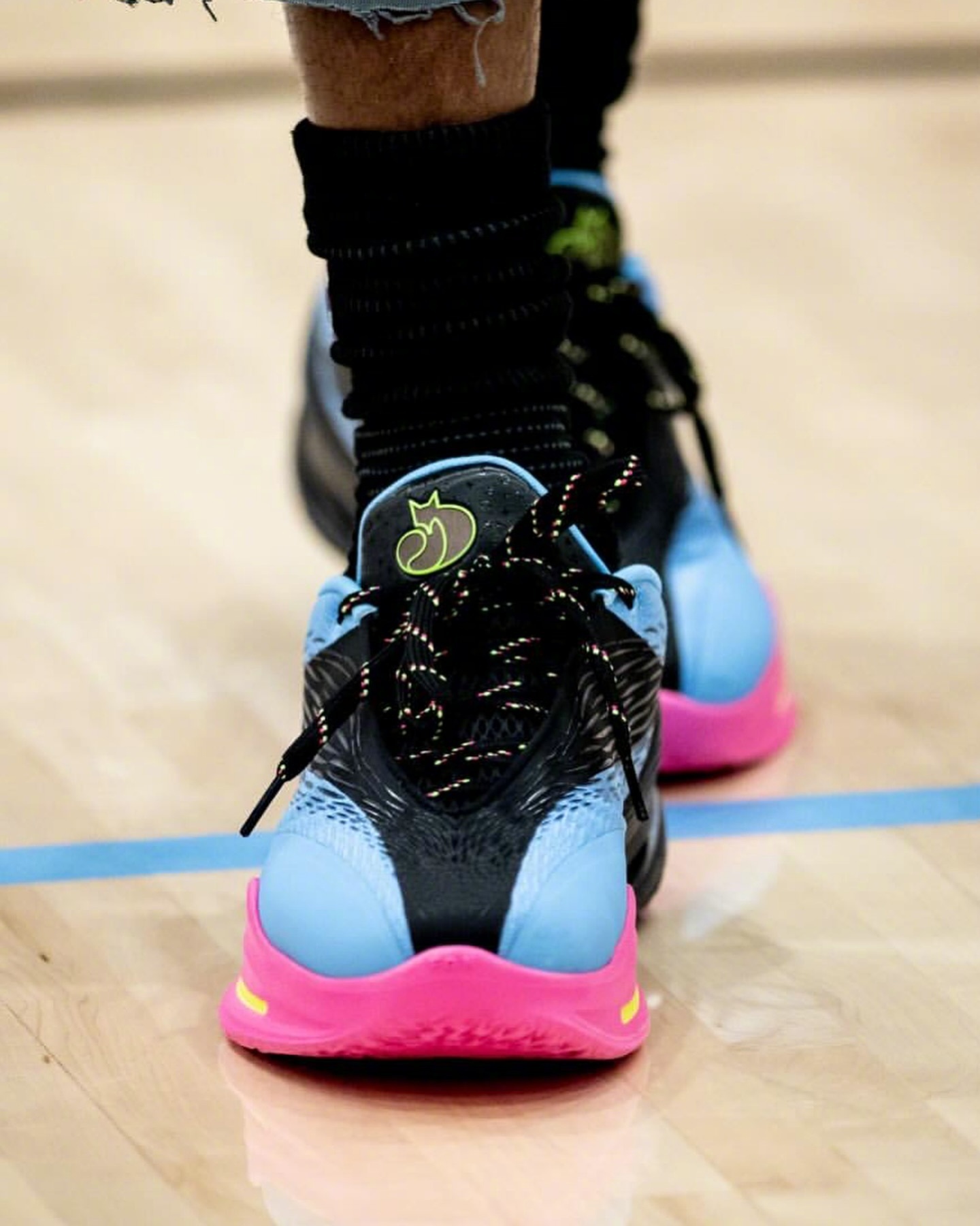 福克斯训练中上脚Fox 3代签名鞋,这回是正式版的UA LOGO了,鞋面相比之前米切尔穿的增加了一条像前代魔术贴造型的黑色膜压层,前后分掌设计,FLOW的基础上后掌还有内填的缓震科技🦊