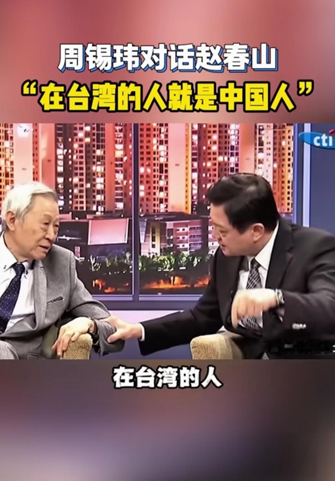 近日,前台北县长周锡玮与淡江大学荣誉教授赵春山对话,一番直言震动岛内。他眼含血丝、情绪激动,大声疾呼:在台湾的人就是中国人,台湾人一定要清醒过来。