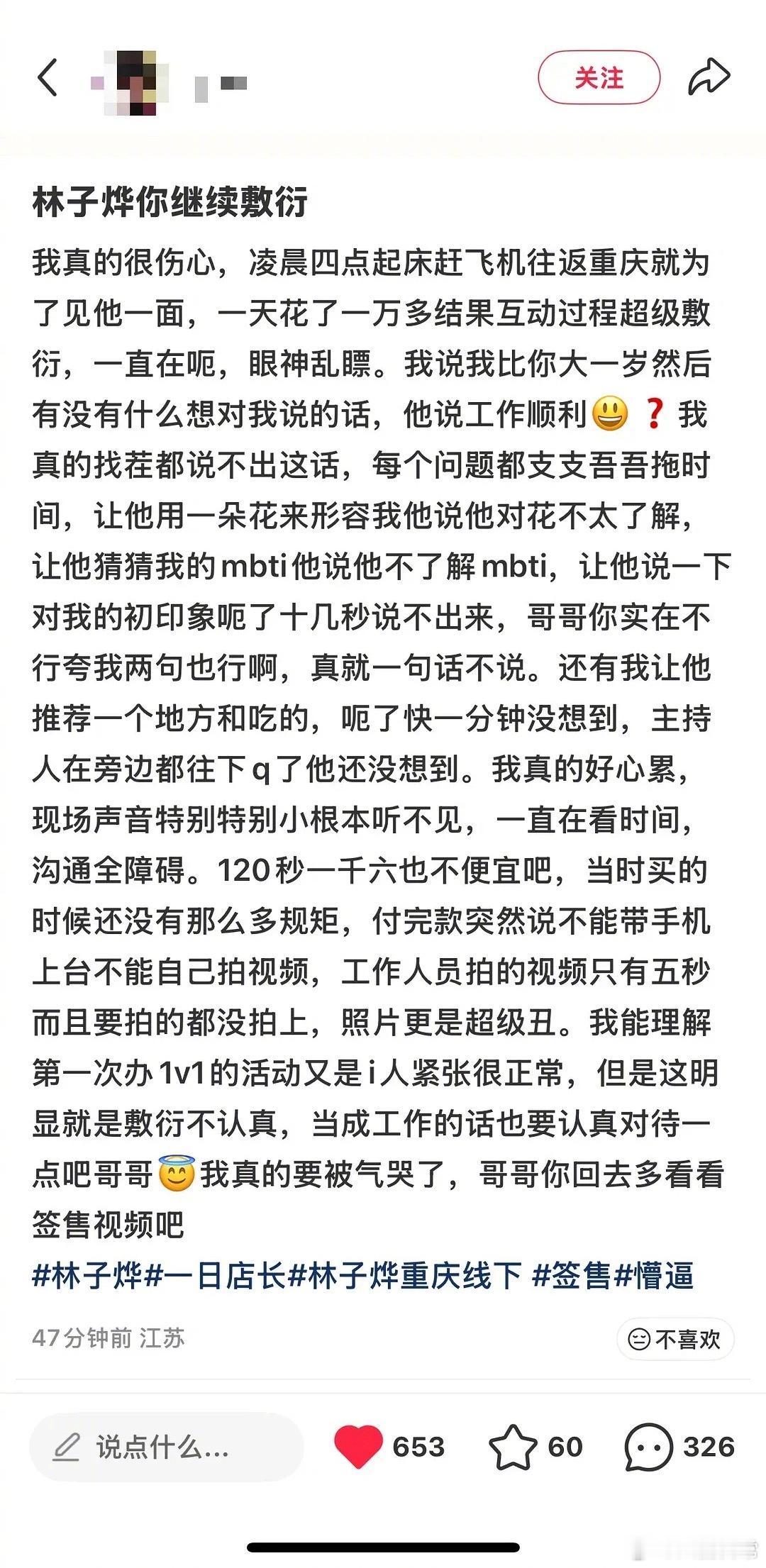 林子烨今天签售态度被粉丝集体回踩了