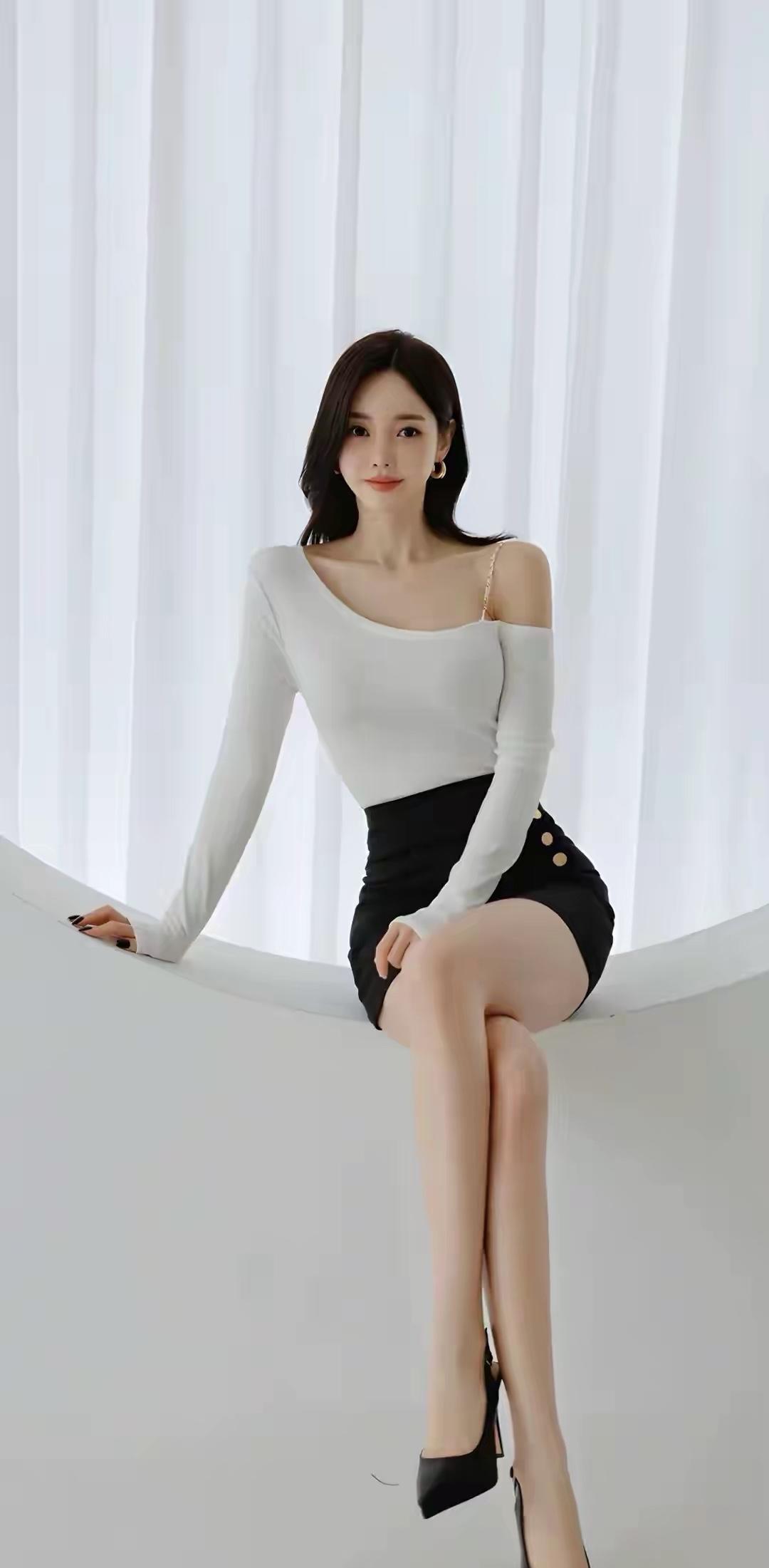 优雅黑裙,气质女神,车旁合影,尽显魅力!