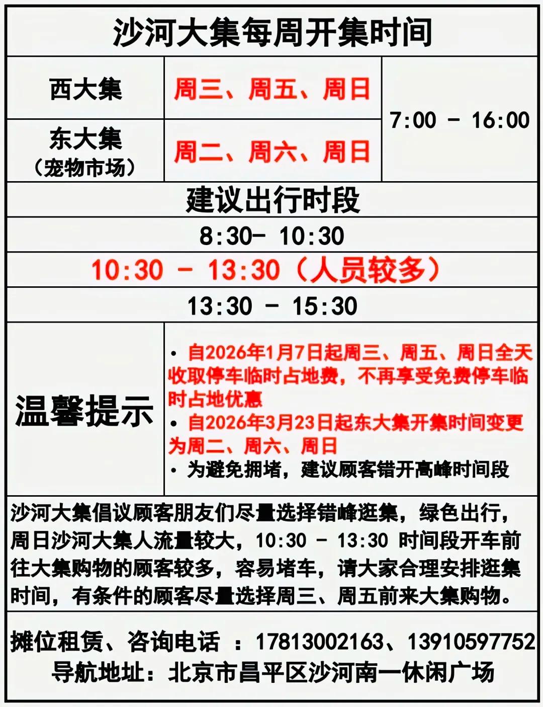 建议大家错峰选择周三或周五下午前来大集,享受购物休闲的同时,也能避免交通拥堵。由此给您带来的不便,我们深表歉意,敬请谅解。
