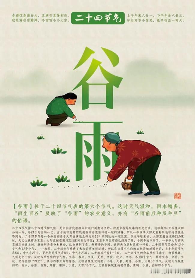今天是谷雨节气,是中国传统二十四节气中的第六个节气,也是春季的最后一个节气。