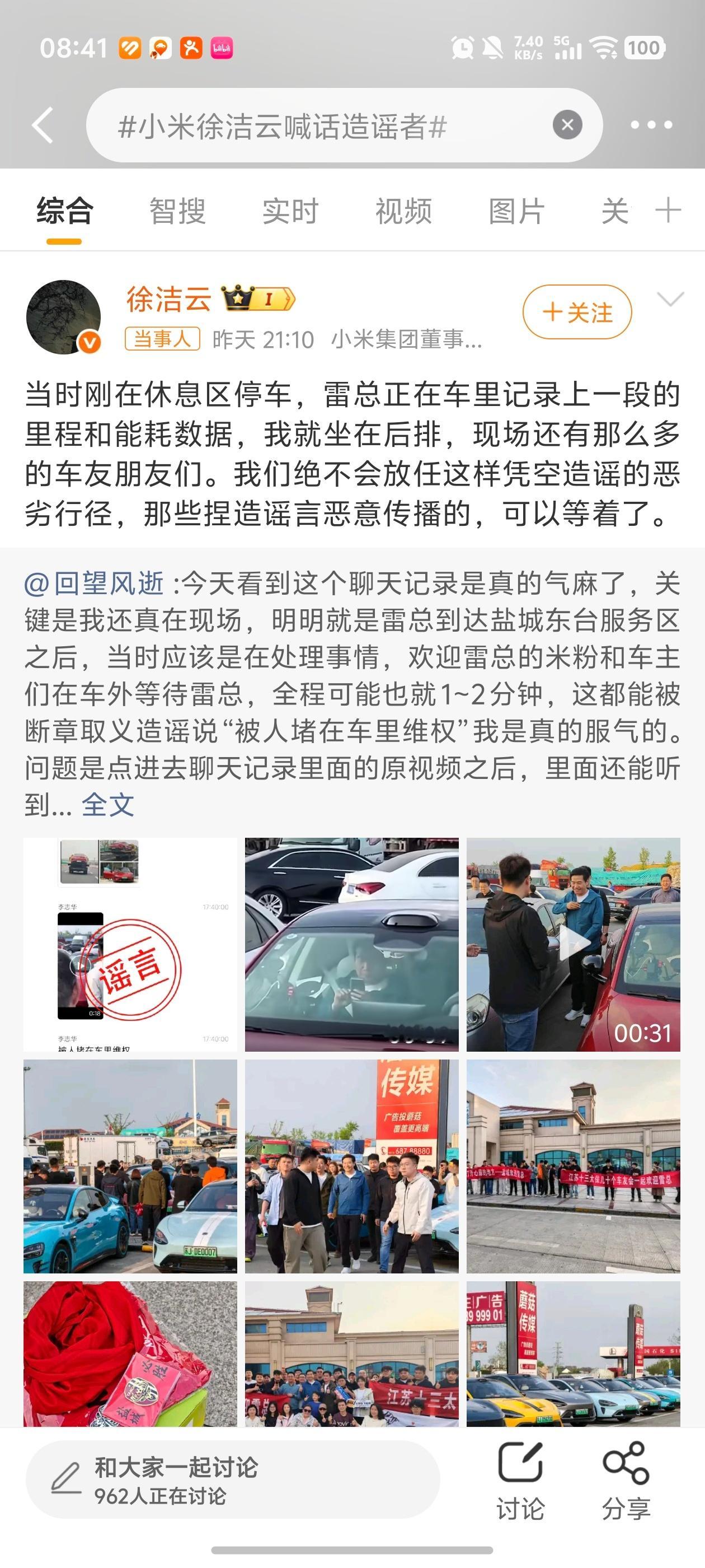 小米徐洁云喊话造谣者这也太离谱了,明明是欢迎雷总的米粉和车主们在车外等待雷总,被断章取义造谣说“被人堵在车里维权”