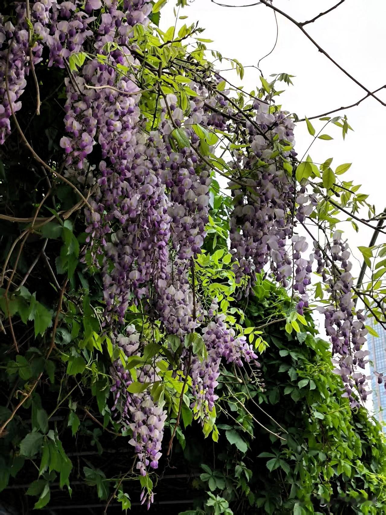 开在海河岸上的紫藤花,浪漫唯美,串串紫藤花随风飘舞,芳香四溢,令人痴迷。[比心]