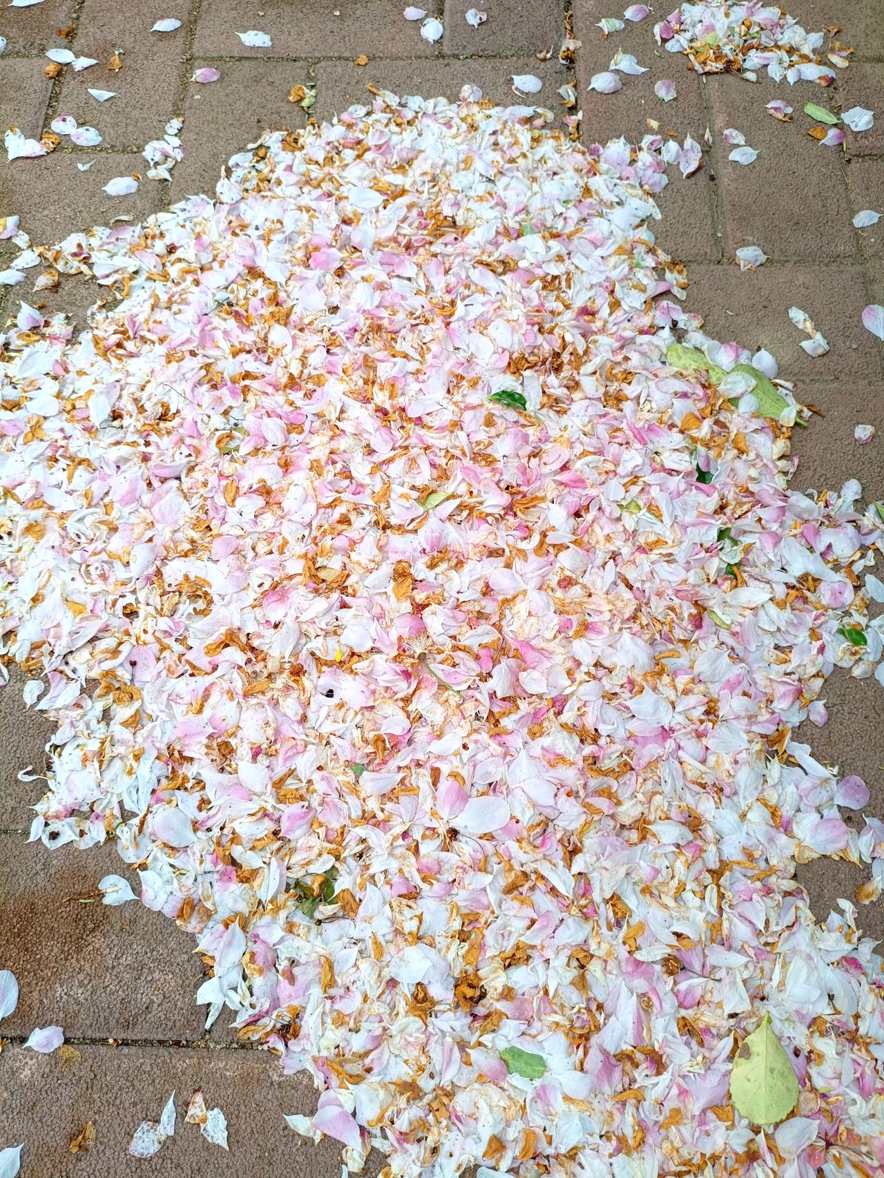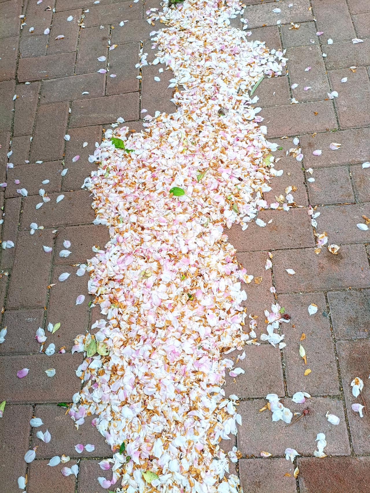 “夜来风雨声,花落知多少”,今天是完美诠释了。