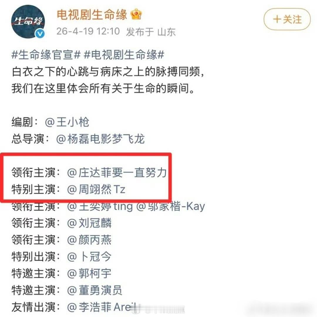 周翊然被庄达菲回车了 庄达菲这两年靠哪部戏能一番回车周翊然的 这么看,嘟嘟还是好说话《生命缘》官宣,男主但挂的是特别主演,挤在一堆领衔主演中间。网友都开始疑惑为什么《翘楚》能和陈都灵平番?