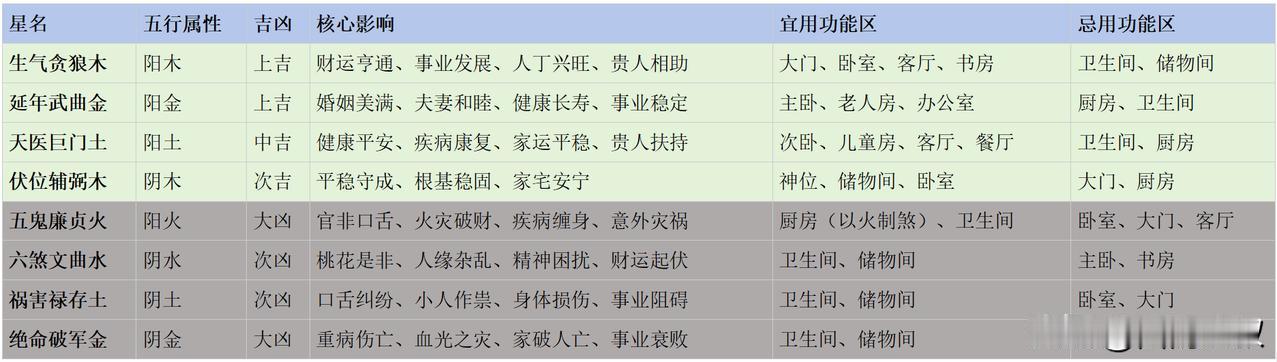 坎宫是正福德宫(又称 "福元" 或 "伏位"),所有门、房、井、灶布局,都从坎宫(正北)开始算,记住坎宫起伏“大游年”口诀:“坎、五、天、生、延、绝、祸、六”。