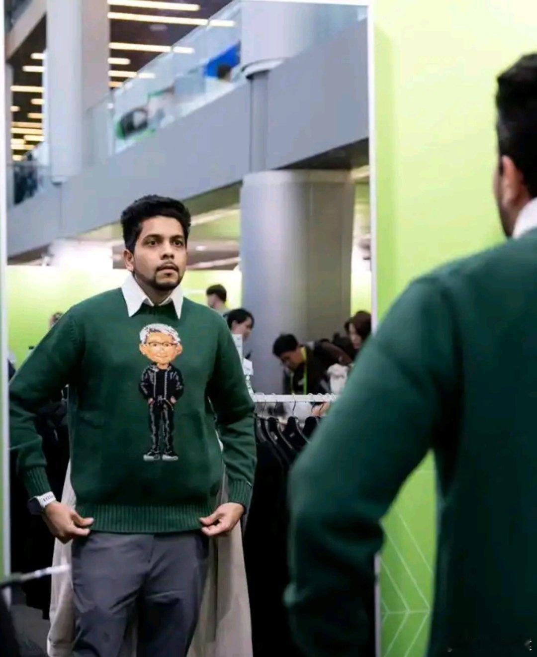 英伟达178美元黄仁勋毛衣走红印有英伟达CEO黄仁勋卡通形象的毛衣走红。老黄的皮