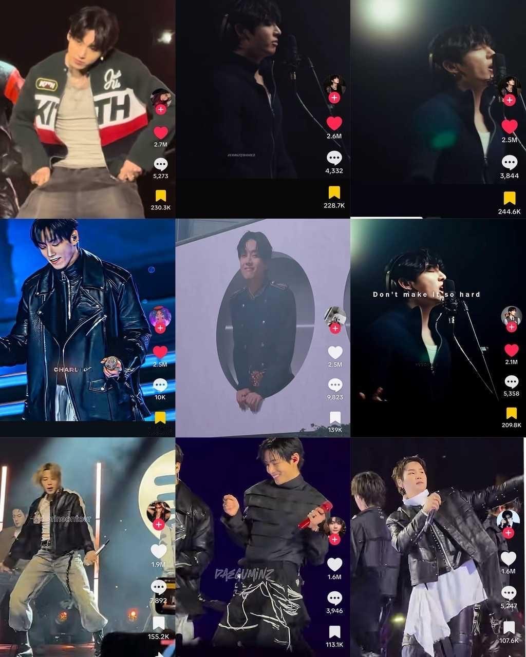 防弹少年团回归期间TikTok饭制视频点赞:田柾国狂揽前4,前9占5田柾国独揽5