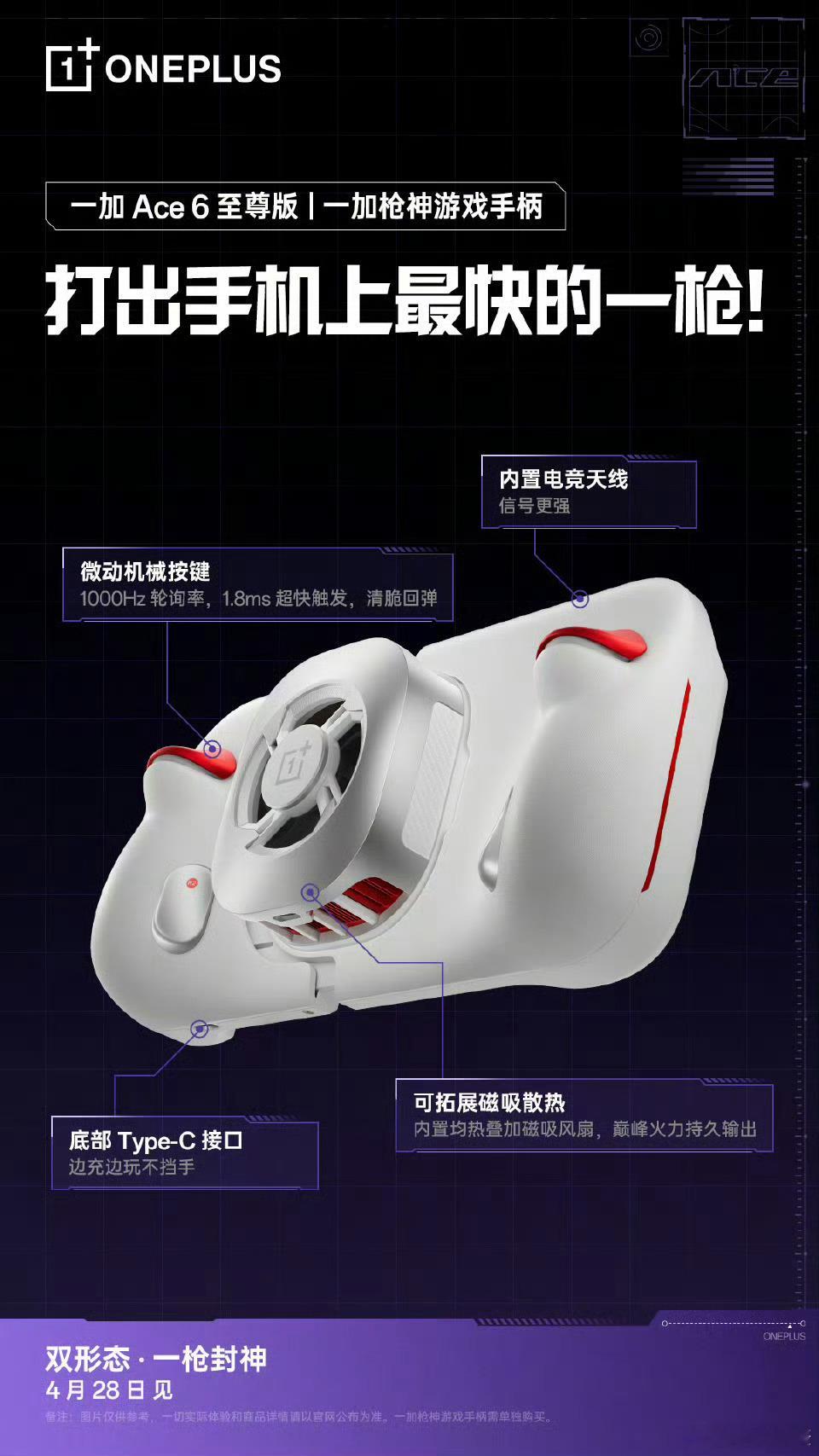 官宣,一加 Ace 6至尊版定档4.28日发布!有点东西 这个枪神游戏手柄好哇,