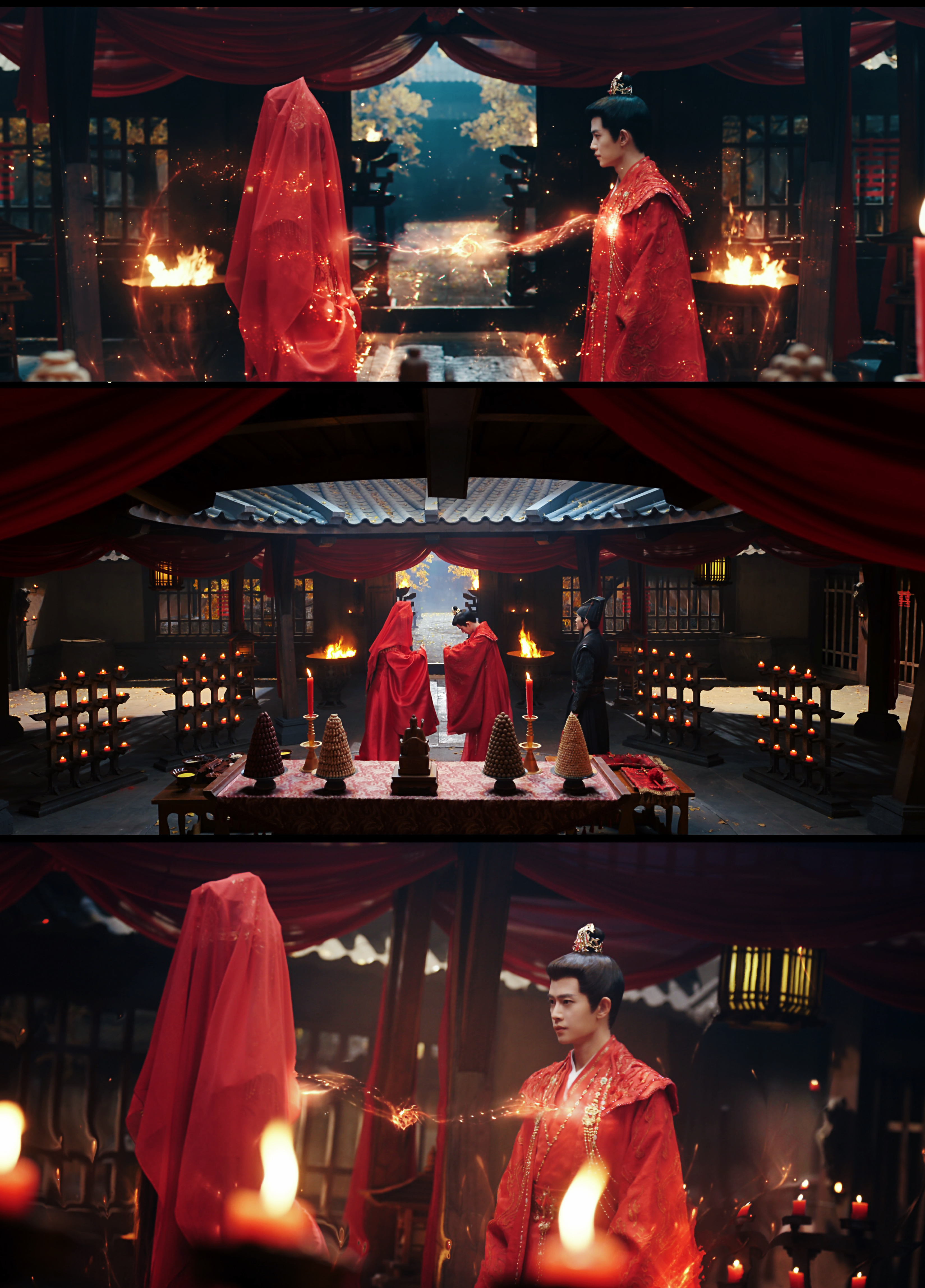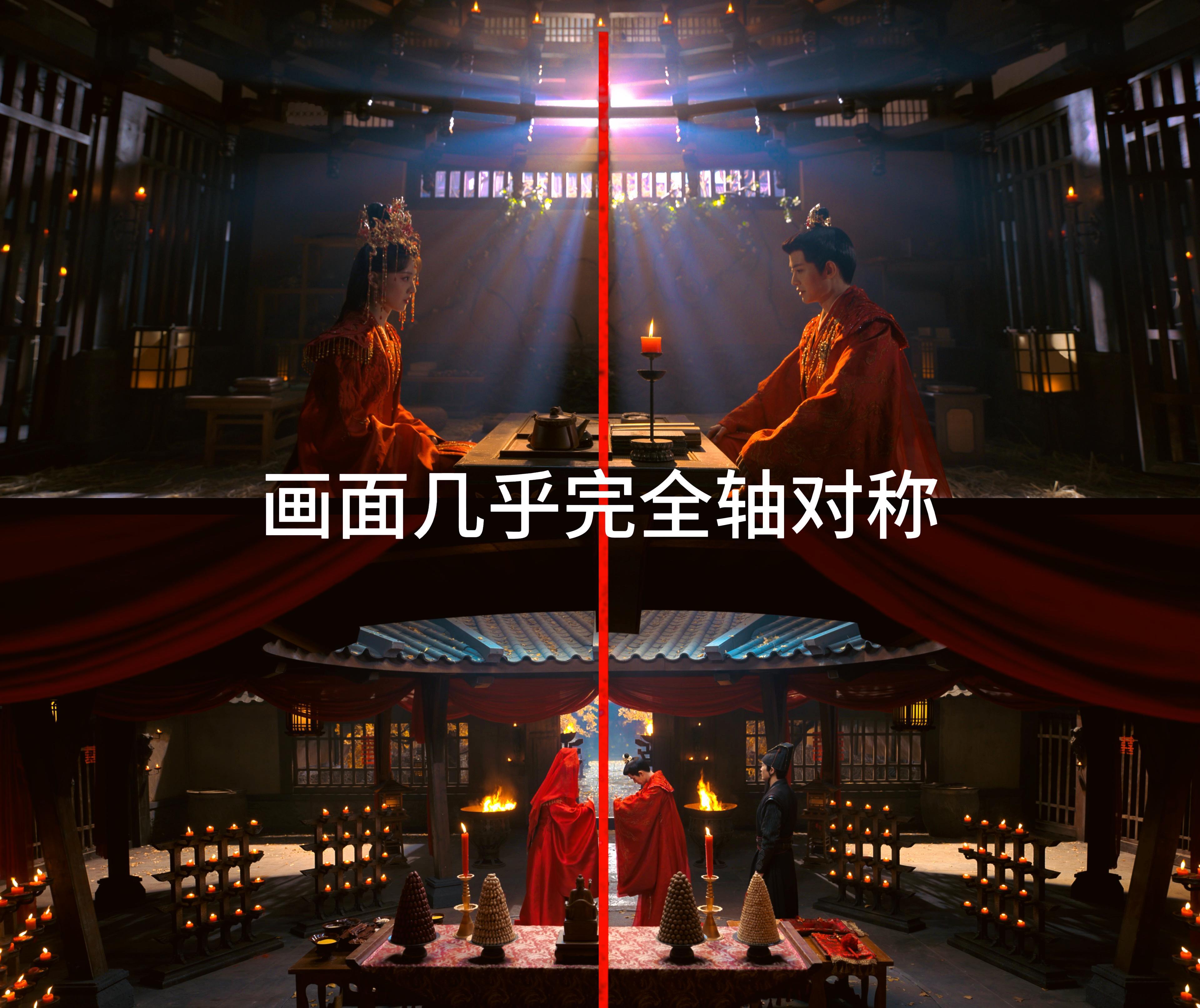啥剧20秒拍完大婚入土复活 《佳偶天成》这个监狱爆改婚房还整得挺像模像样,基础的红幔、凤冠霞帔、龙凤红烛都有的同时,塔状贡品、代替“高堂”来证婚的神像、桌子左右两边放着的礼器啥都有,整个空间布置和镜头拍摄手法,甚至是陆千乔和辛湄夫妻对拜时的走位调度,都有一种很庄重的对称感,把本强迫症人士照顾的很好!就冲这个大婚我也得去尝尝咸淡!电视剧佳偶天成