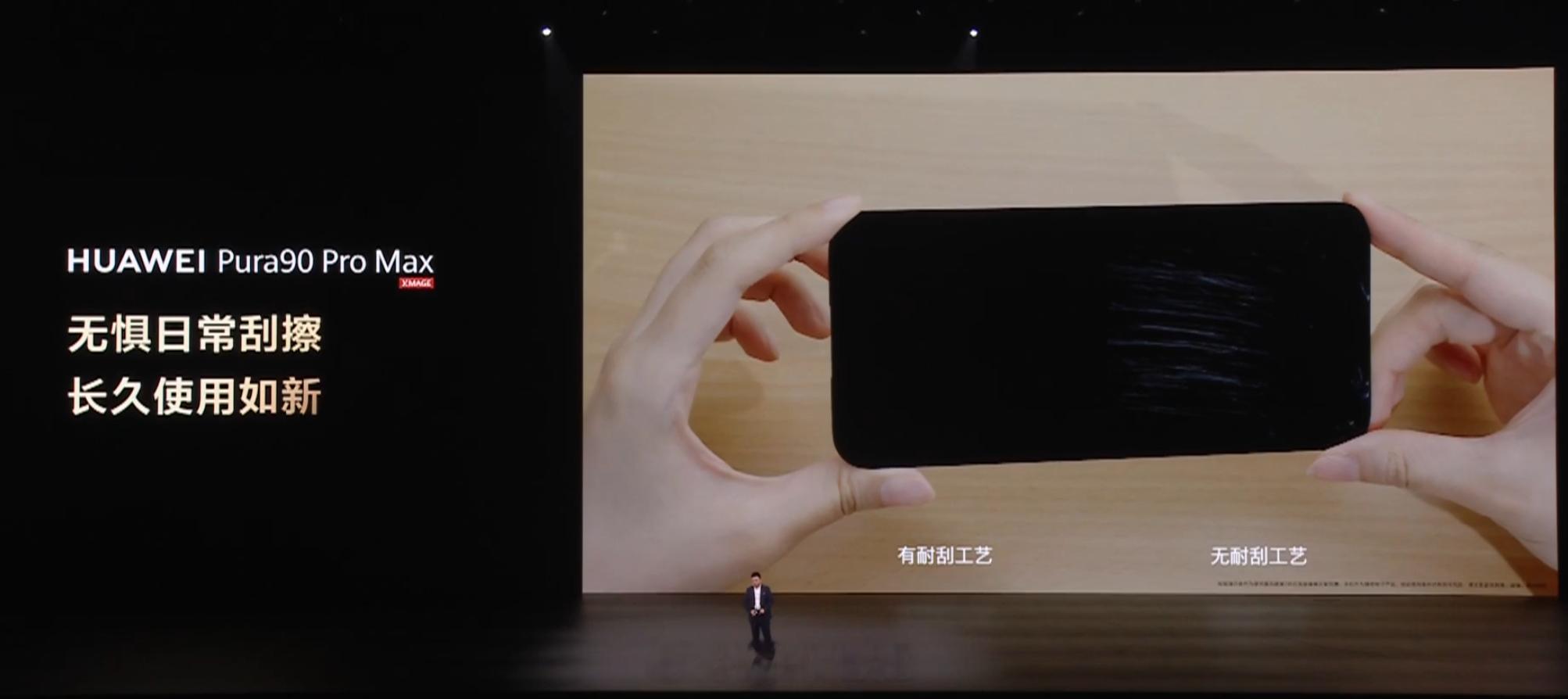 Pura 90 Pro Max 带来抗反光耐刮昆仑玻璃,屏幕反光降低 70%,耐刮能力提升 16 倍,耐摔能力提升 25 倍,不贴膜也行,可惜只有 Max 搭载,不是标配。