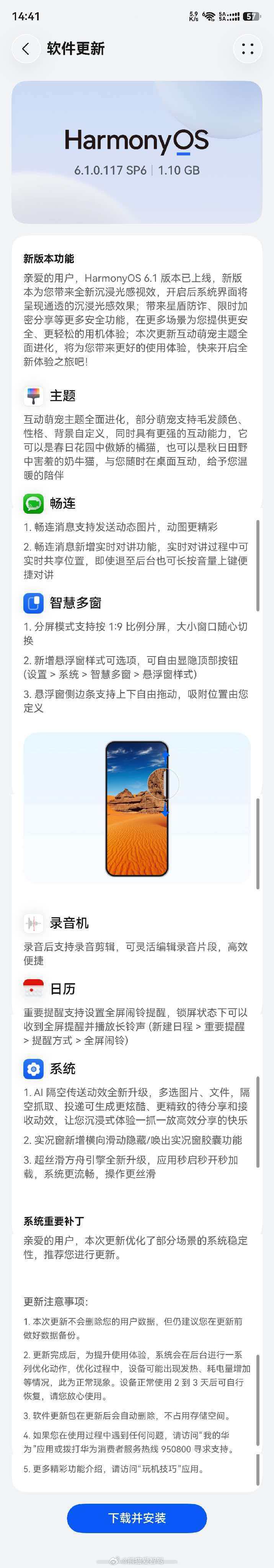 HarmonyOS6 6.1.0.117 版本推送来了,我的pura80系列也有