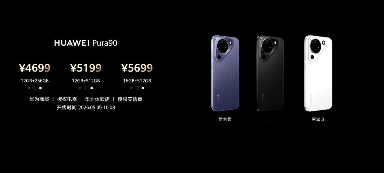 Pura90 Pro Max,12GB+256GB 6499,12GB+512GB 6999,16GB+512GB 7499,16GB+1TB 8499。