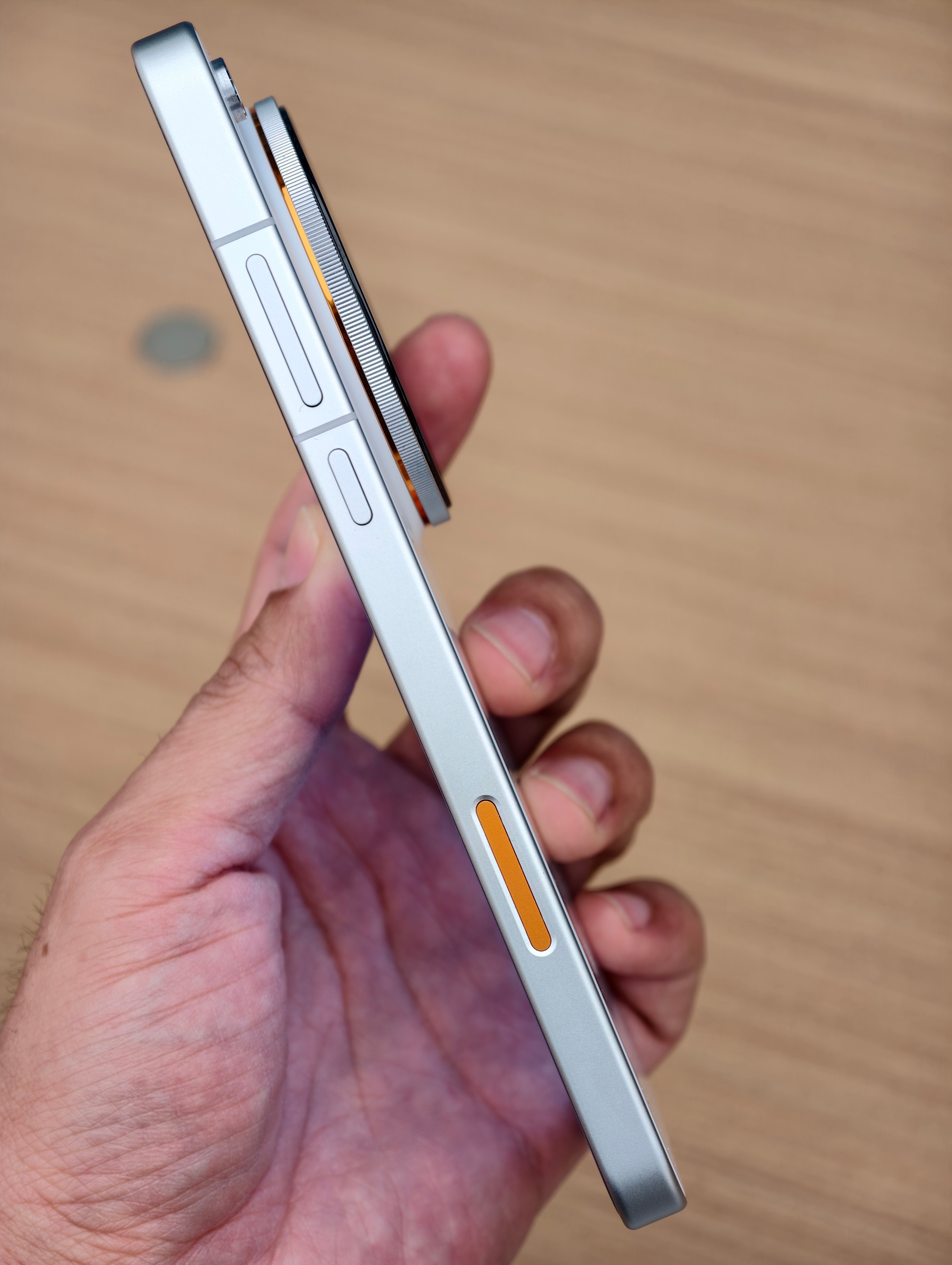 去线下摸了一把 OPPO Find X9 Ultra有点尊味儿,尤其是那个素皮版本;那个六边形的玻璃盖板外面是有一个细细的保护圈,但还是凸出太多了,一定得戴壳,不然摔一下受不了;那颗拍照键还在图7;Deco高度比蓝厂X300 Ultra低很多,很好。二者的长、宽、厚度没啥区别;橙色很好看(忘了拍了);