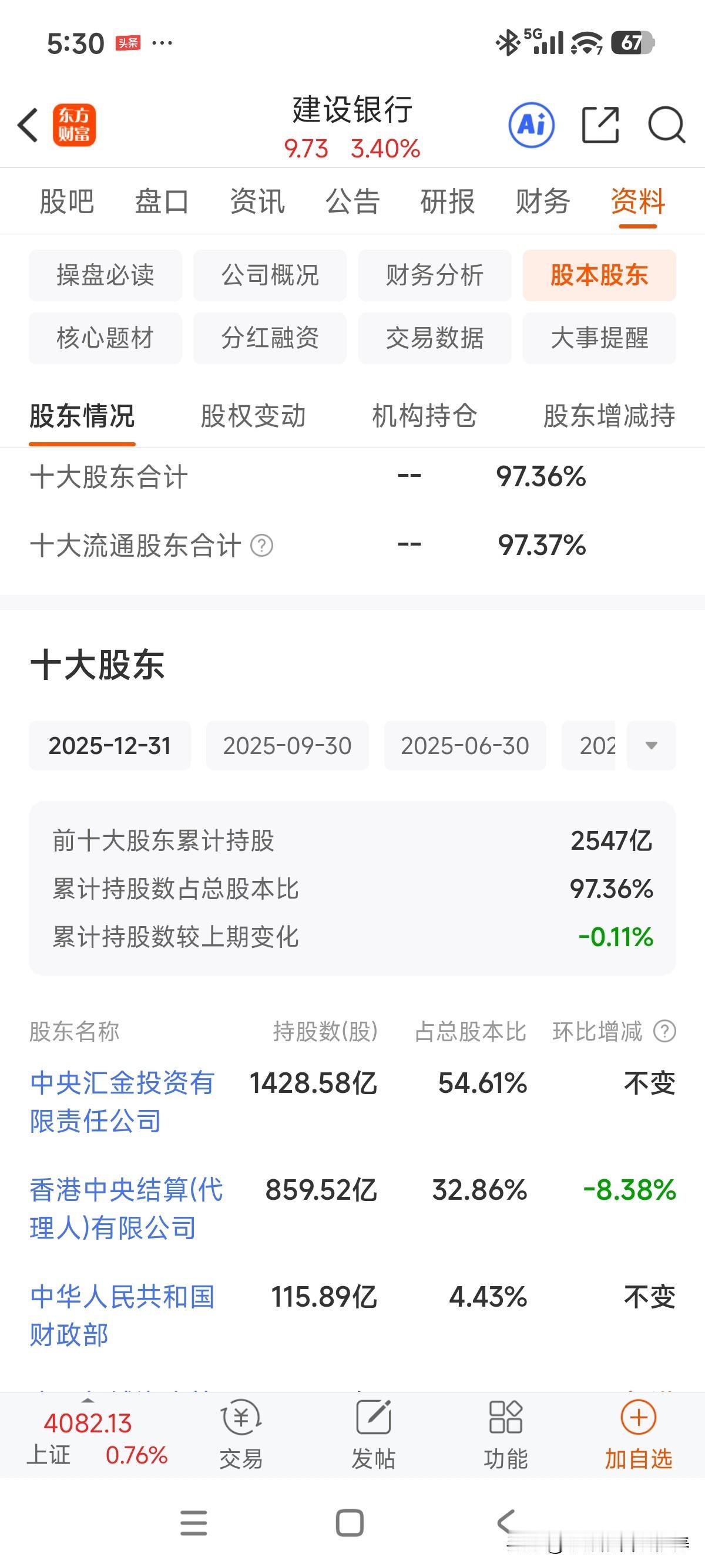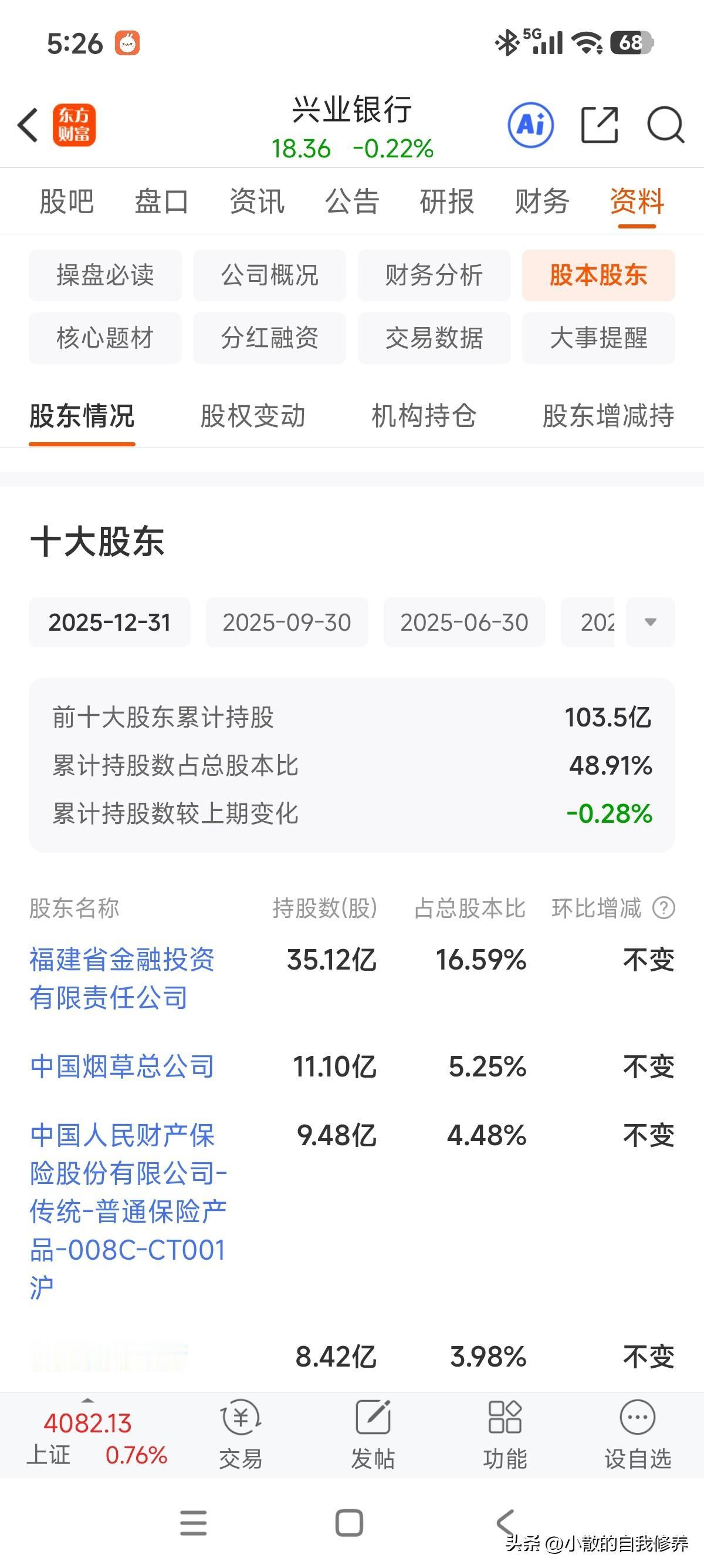 招商银行前十大股东持股占比64.8%,一路不亲创新高的建设银行十大股东占比97.36%,而兴业银行前十大股东持股占比仅48.91%!