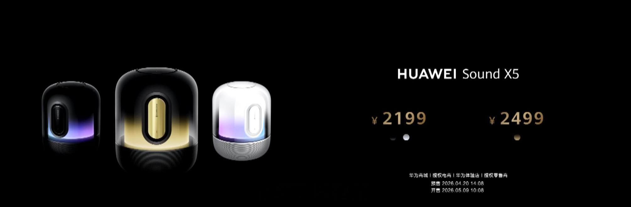 华为 Sound X5 云白和玄黑配色售价 2199 元,鎏金售价 2499 元