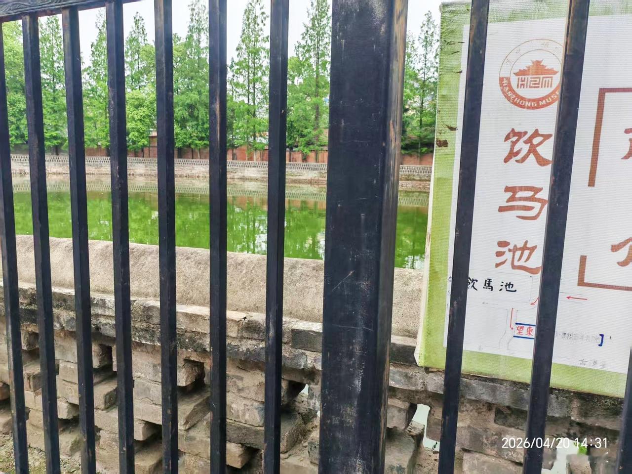 结束这里的参观,走不了十分钟就可以到达“西汉三遗址”之一的刘邦的饮马池,可是我们家那位不愿走,打的几分钟就到了。饮马池又名东湖,相传为汉王驻军饮马之地,饮马池用栅栏保护起来,看起来就是个不大的池塘,右边窄窄的小道旁就是民居,虽说很不起眼,说实话能够原封不动保留下来就是奇迹了。