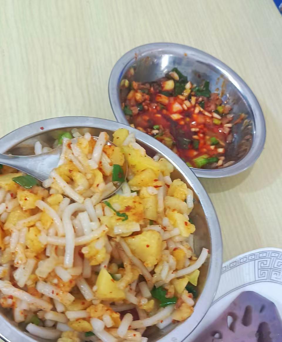 叉洋芋(义园街店):藏在一家巷子里德老店,不少本地人推荐,主要卖叉洋芋和串串,价格很亲民,叉洋芋就是铁板土豆碎,再加一些碎米线,很香,米线又增加了口感,很香。