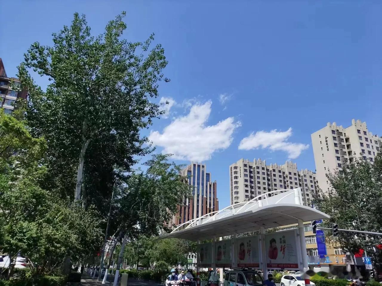 一路林荫,绿槐亭亭如盖,白杨青翠欲滴,日光热烈,生命鲜活。
