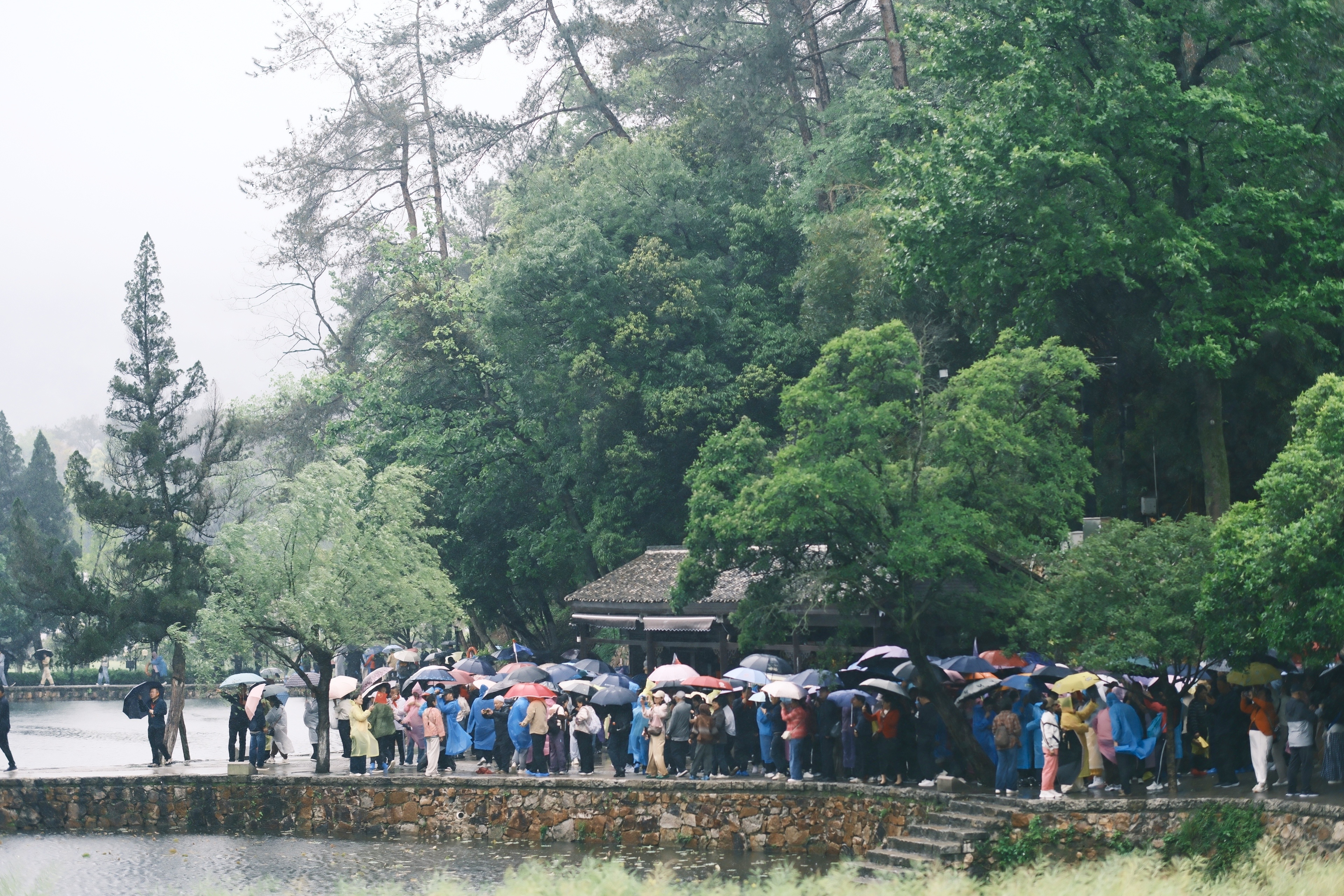 今天,雨大的程度可以用瓢泼大雨来形容,但人山人海,都是前往教员故居的游人,光是排队进入就得排一个多小时,很多人身上都湿透了,仍然在坚持着认真参观故居的一砖一瓦。下午,又去了教员在1910年开始读书的地方湘乡东山学校,留下的最大印象是,这个学校的环境真好,古朴清雅,湖水环绕,能在这里读书,真的会是人生中很难忘的回忆。万千气象看湖南