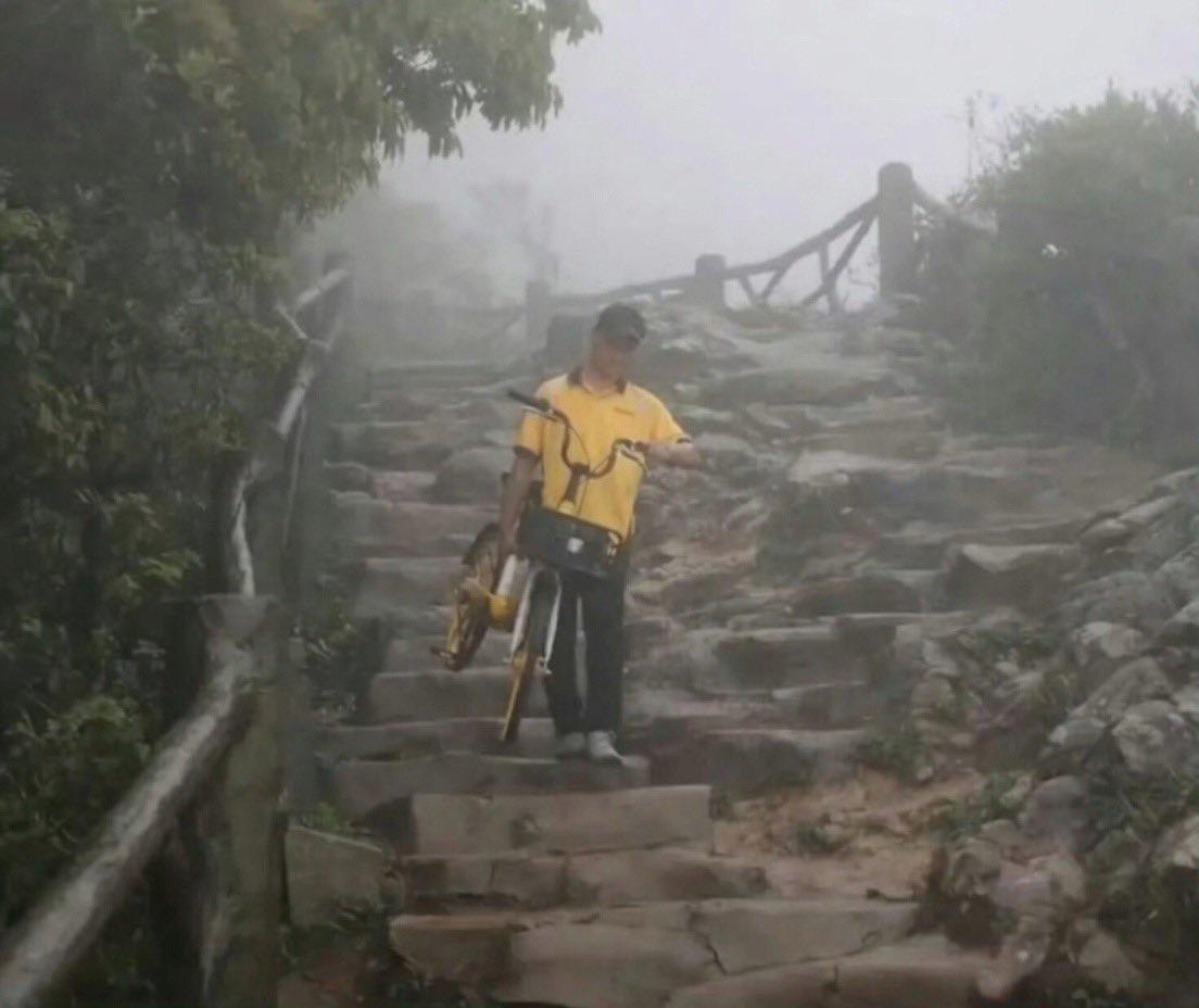 在深圳,有个共享单车运维员接到任务,说梧桐山顶定位到一辆小黄车。 他爬上去一看,果然在那儿。 结果花了整整五个小时,才把这辆车硬是背下了山。 到现在他都想不明白:这辆小黄车到底是怎么跑到山顶上去的?