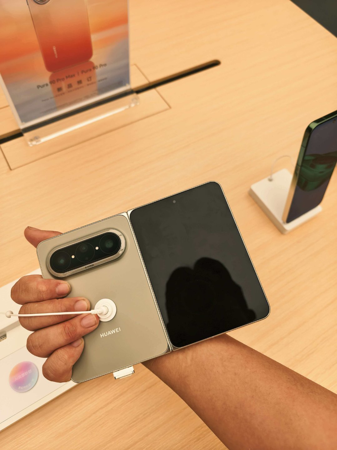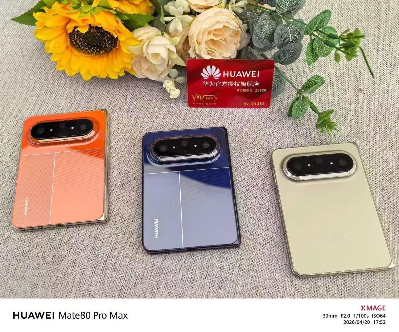 - 相机:前置 8MP,后置 50MP 主摄(1/1.56",12EV 动态范围,f1.4-f4.0 可变光圈,OIS,RYYB)+ 12.5MP 超广角(RYYB)+ 50MP 潜望长焦(Mate X7 同款,1/2.5",f/2.2,OIS,RYYB)+ 第二代红枫原色摄像头,首发 XMAGE 智拍;