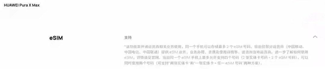 从华为官网获悉,华为 Pura X Max 新机支持 eSIM 卡功能。